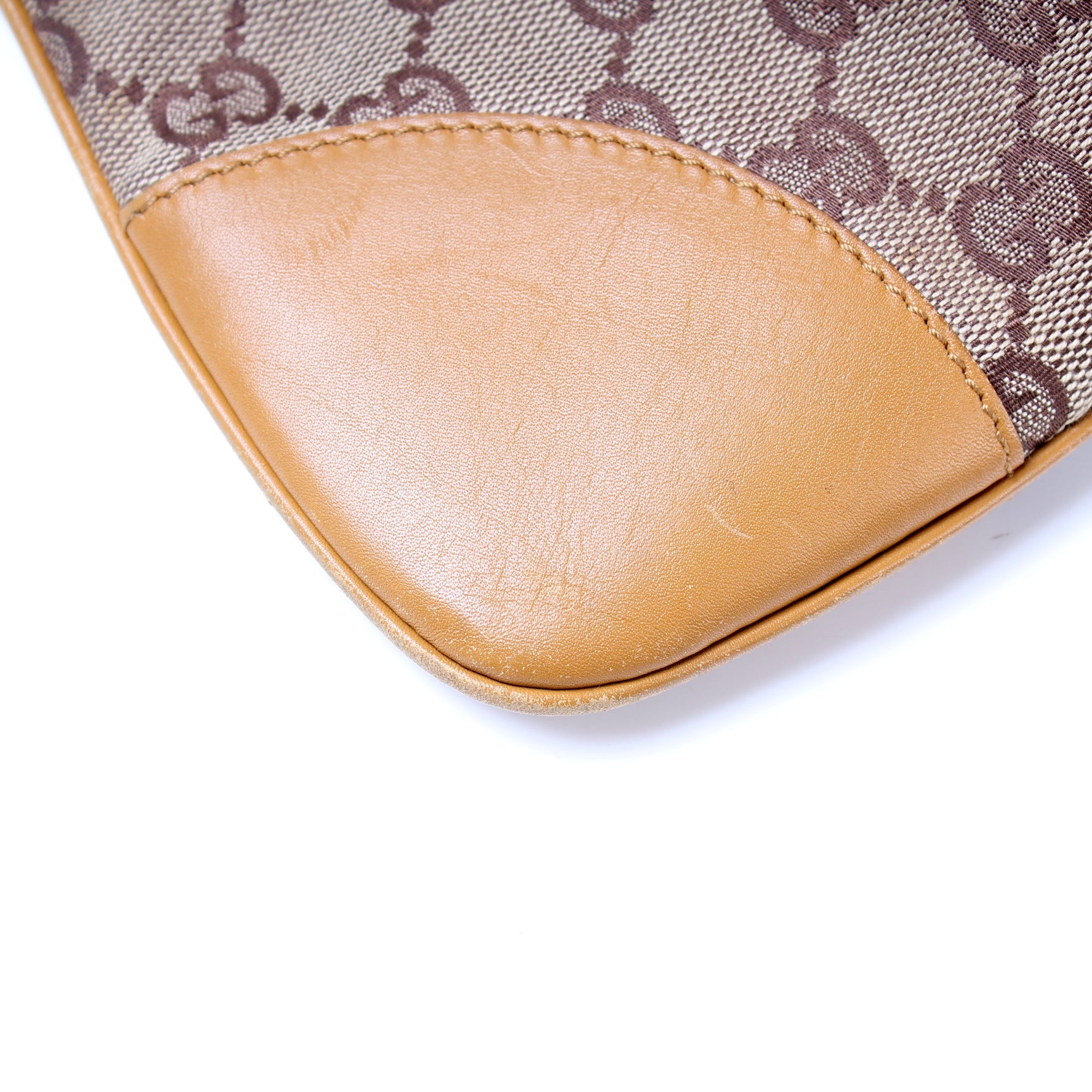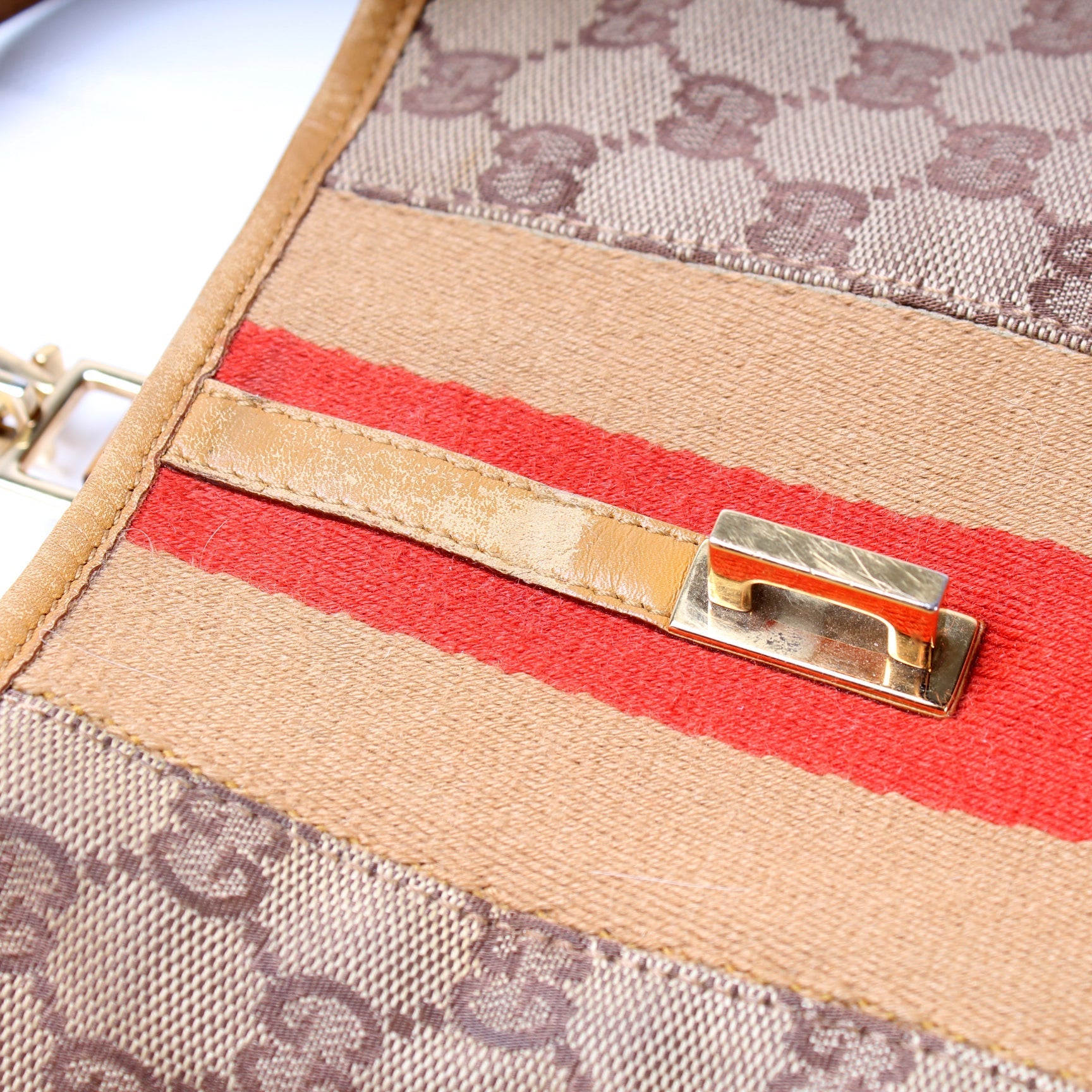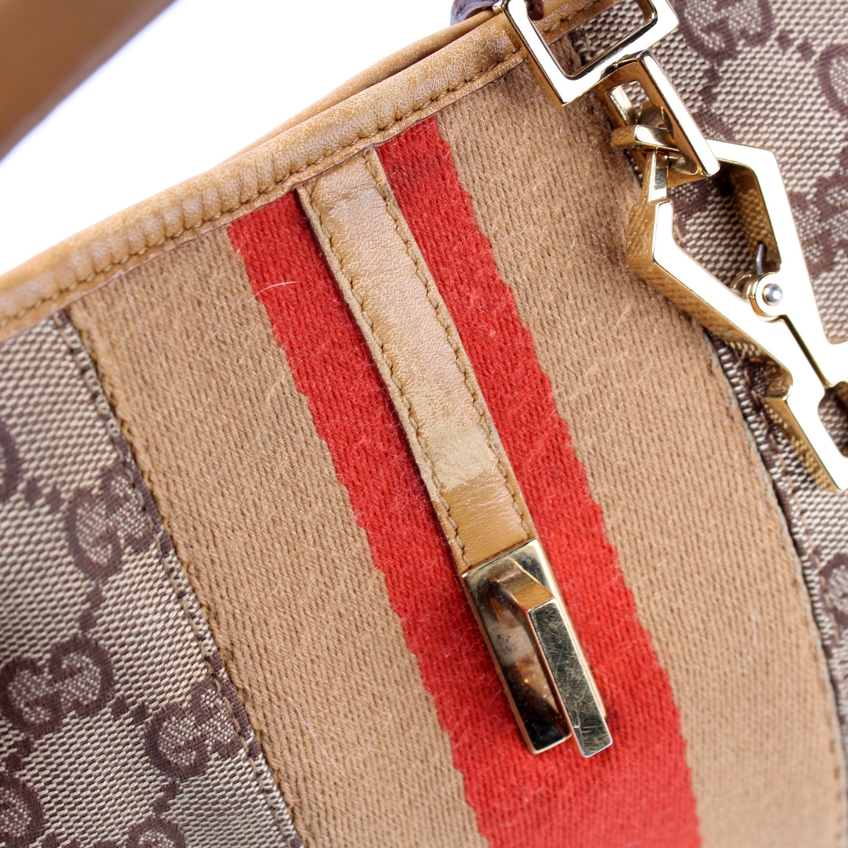 This Gucci Jackie Hobois eye catching bag. The exterior is in the classic Gucci GG canvas.