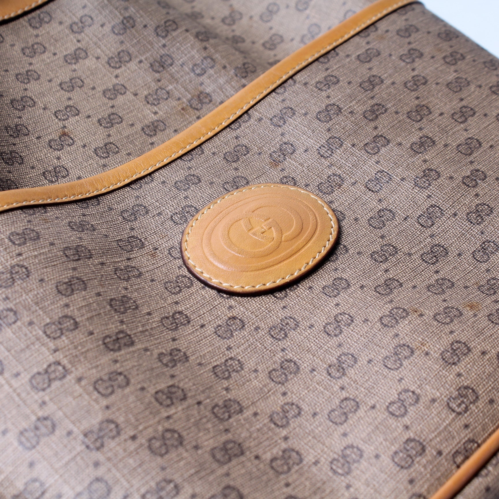 Interior: The interior is clean and free of rips or tears. The interior fabric is peeling and flaking off due to age. The interior features one zip closure pocket.