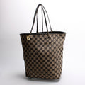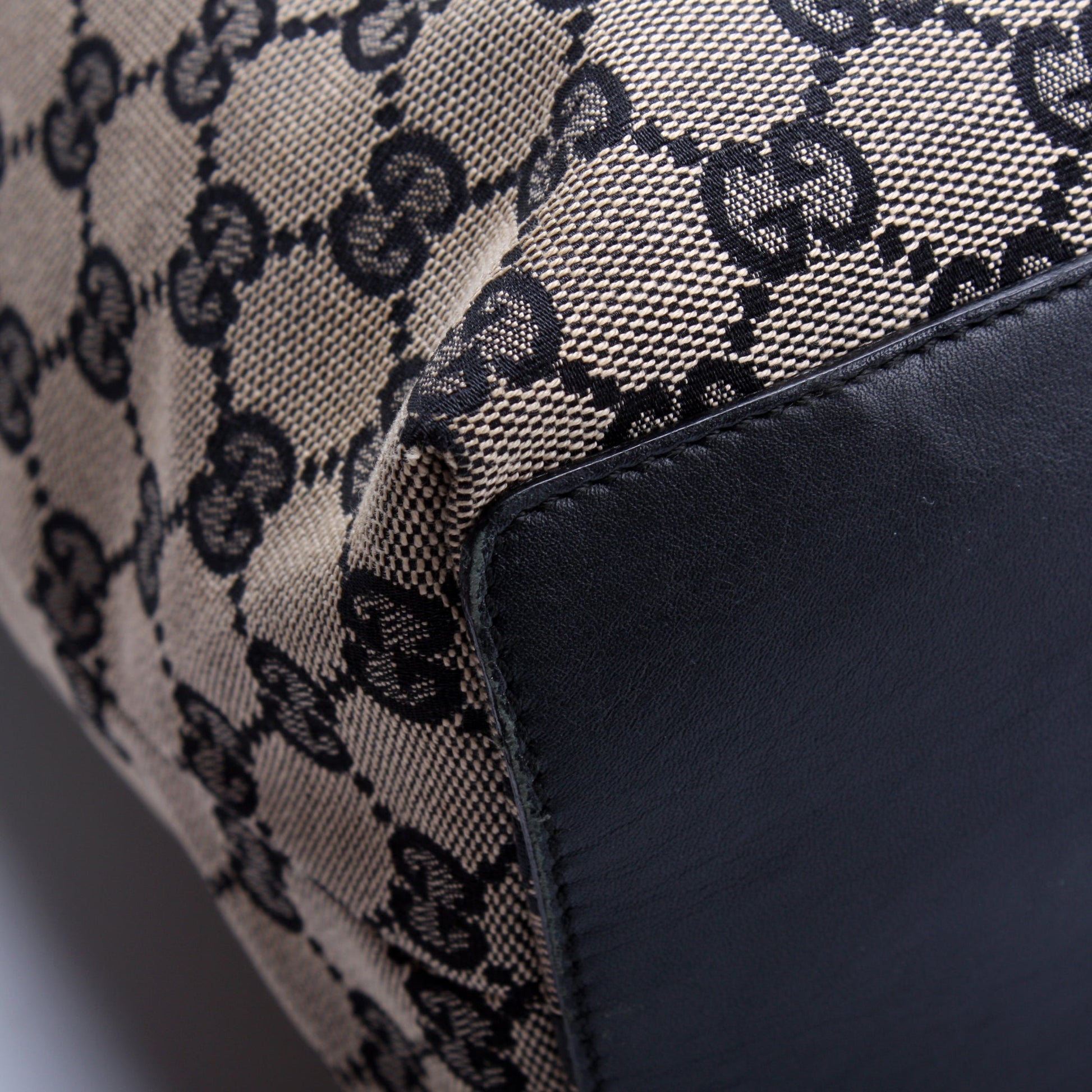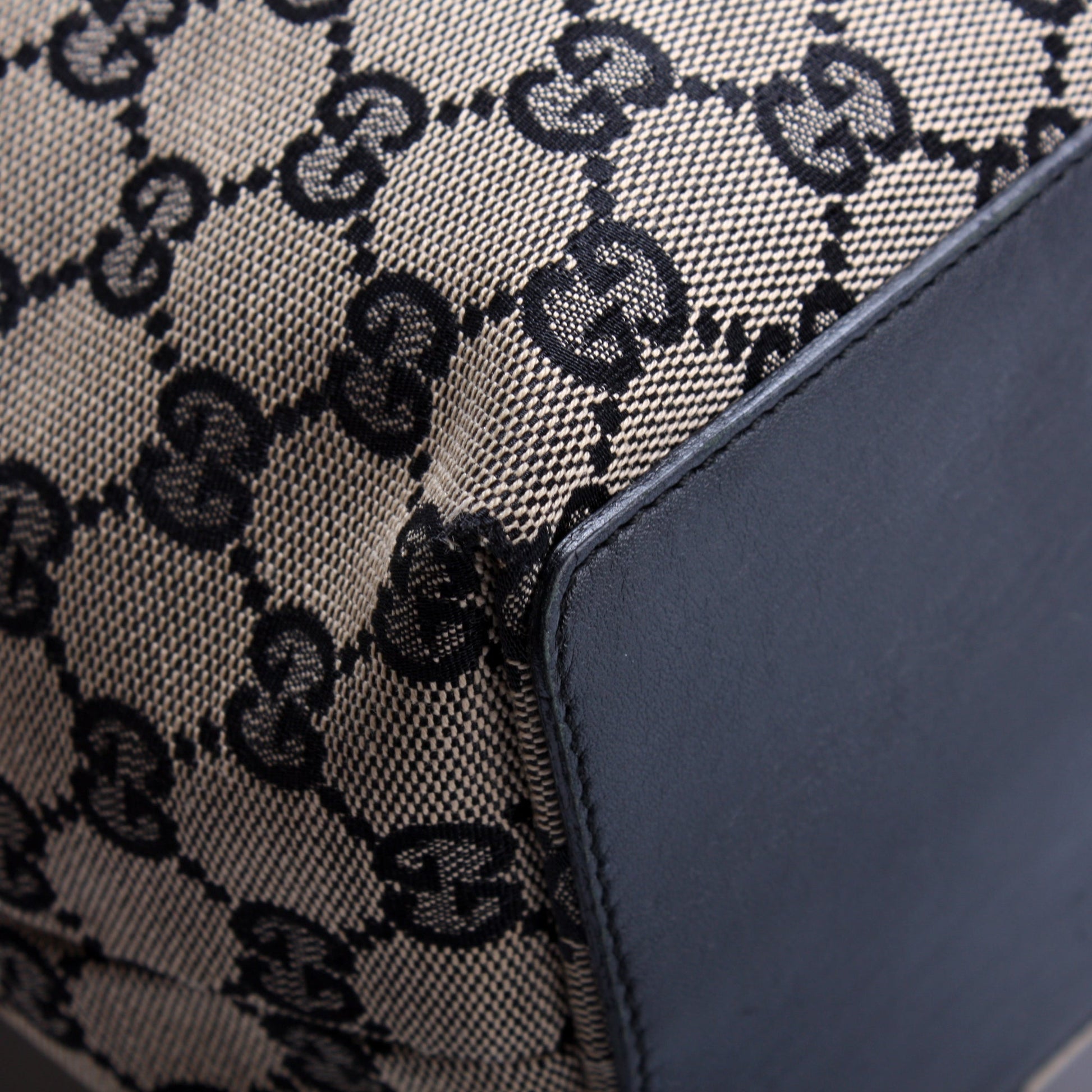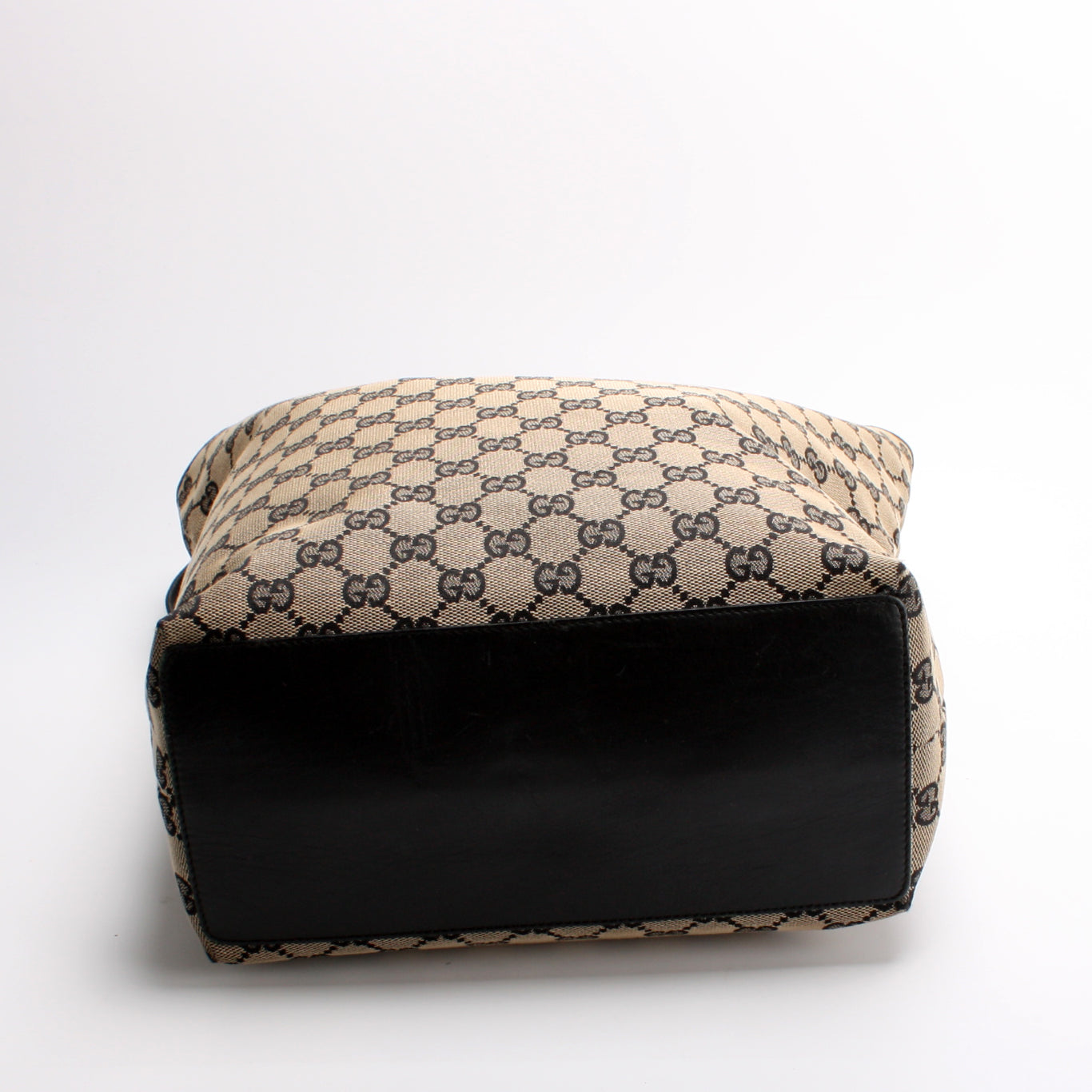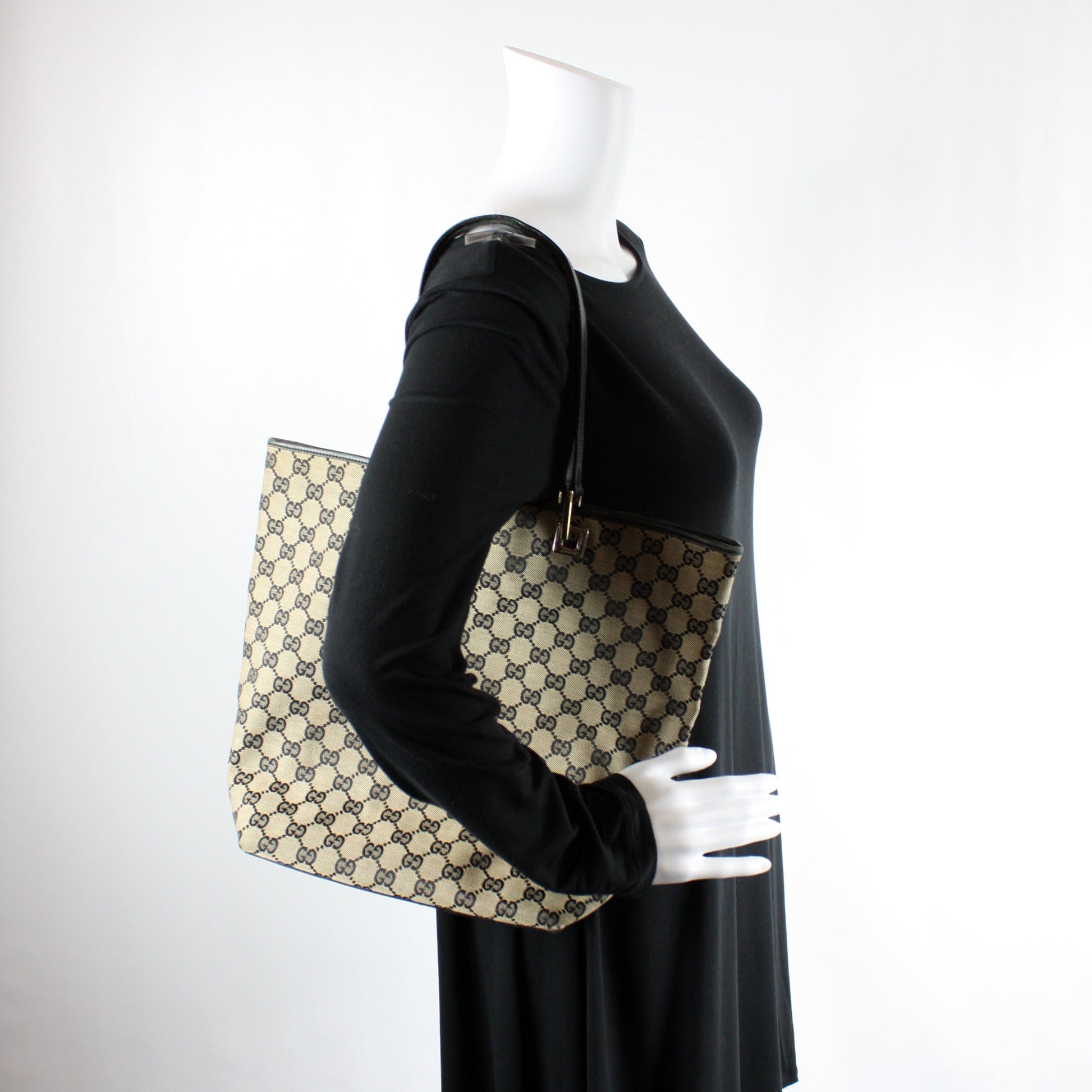This Gucci GG Canvas Tote Mediumis eye catching bag. The exterior is in the classic Gucci GG canvas.