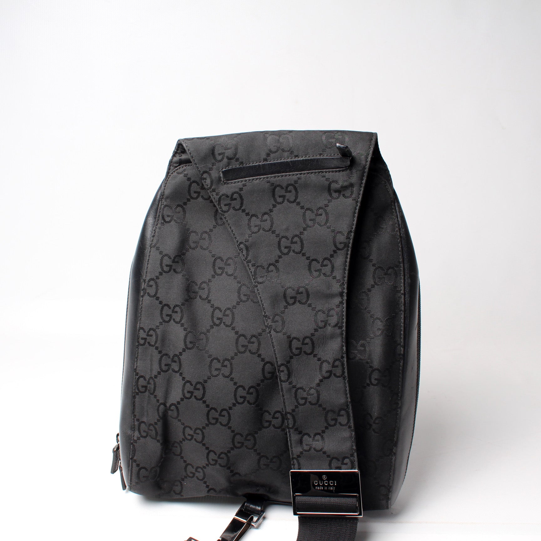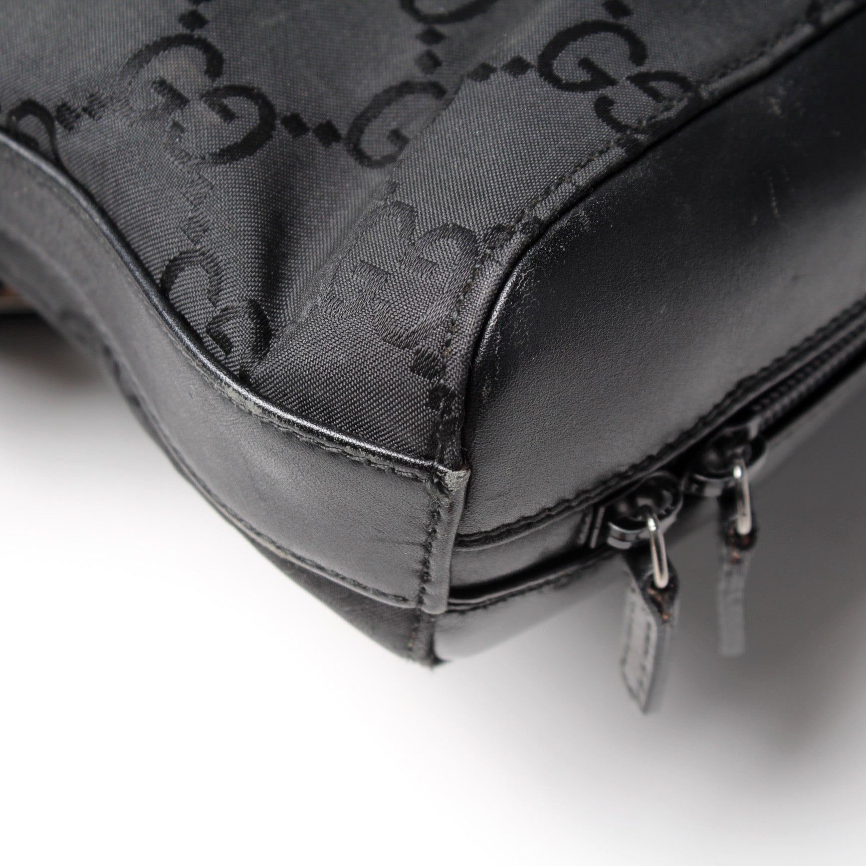 This Gucci GG Nylon Sling Bag Vintageis eye catching bag. The exterior is in the classic Gucci GG Canvas.