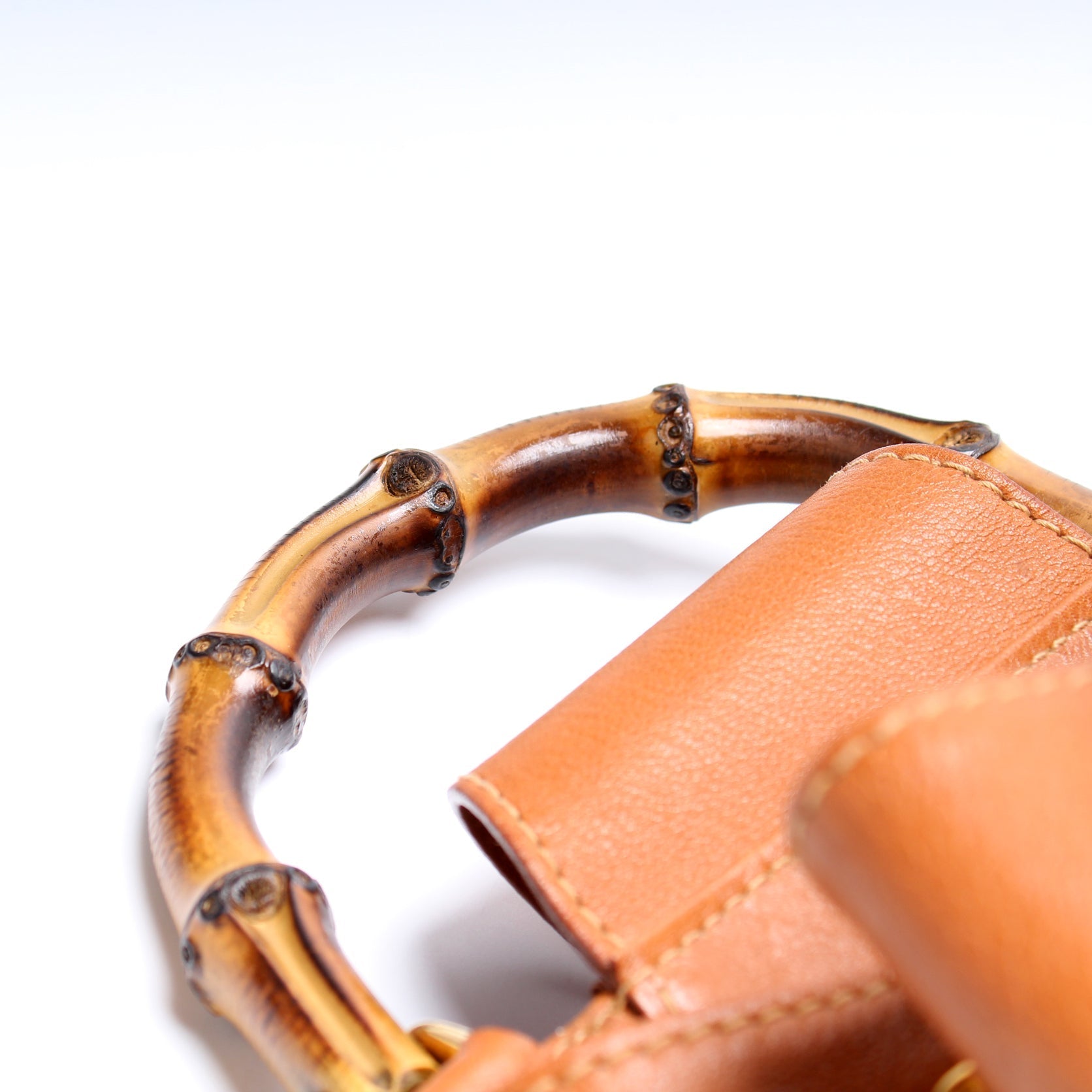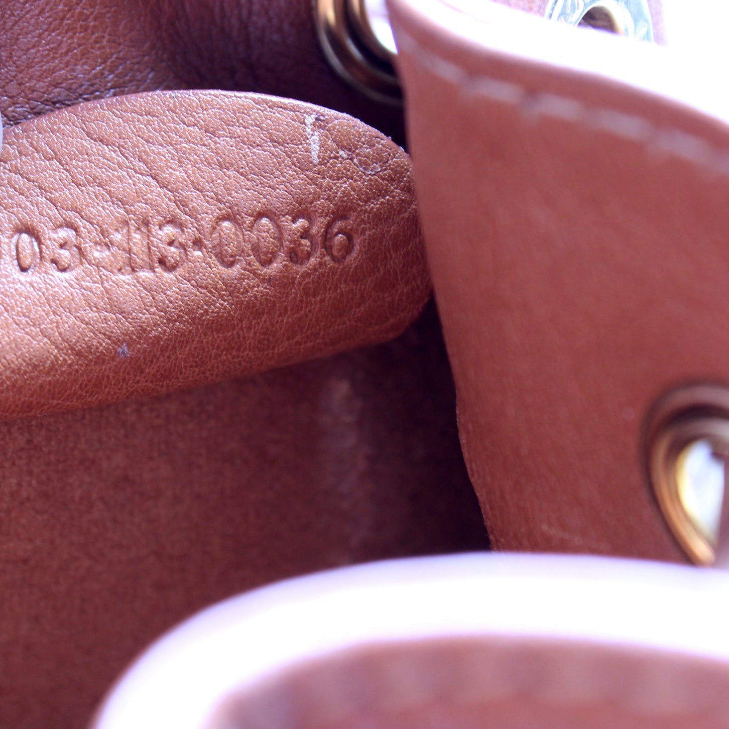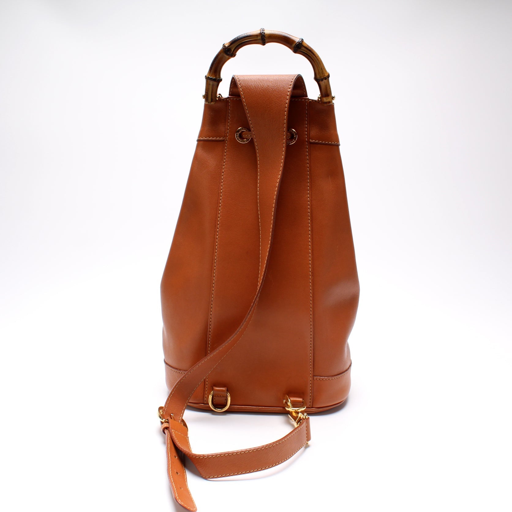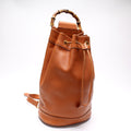 This Gucci Bamboo Leather Sling Drawstirng Backpack Vintageis eye catching bag.