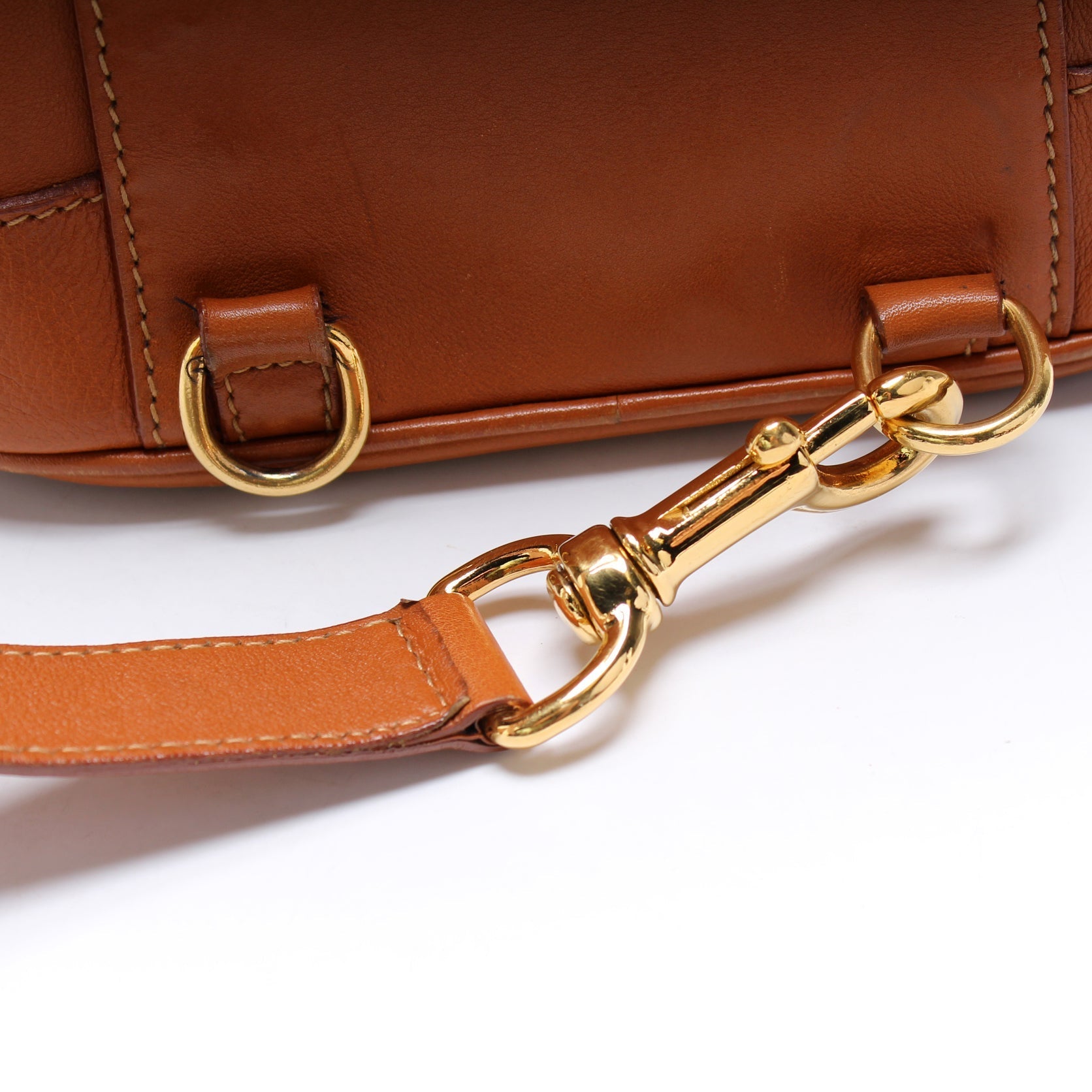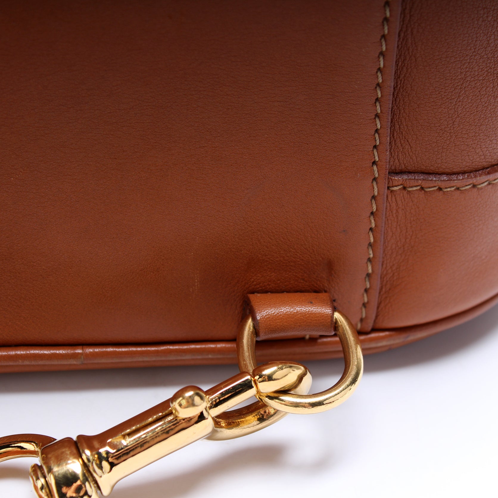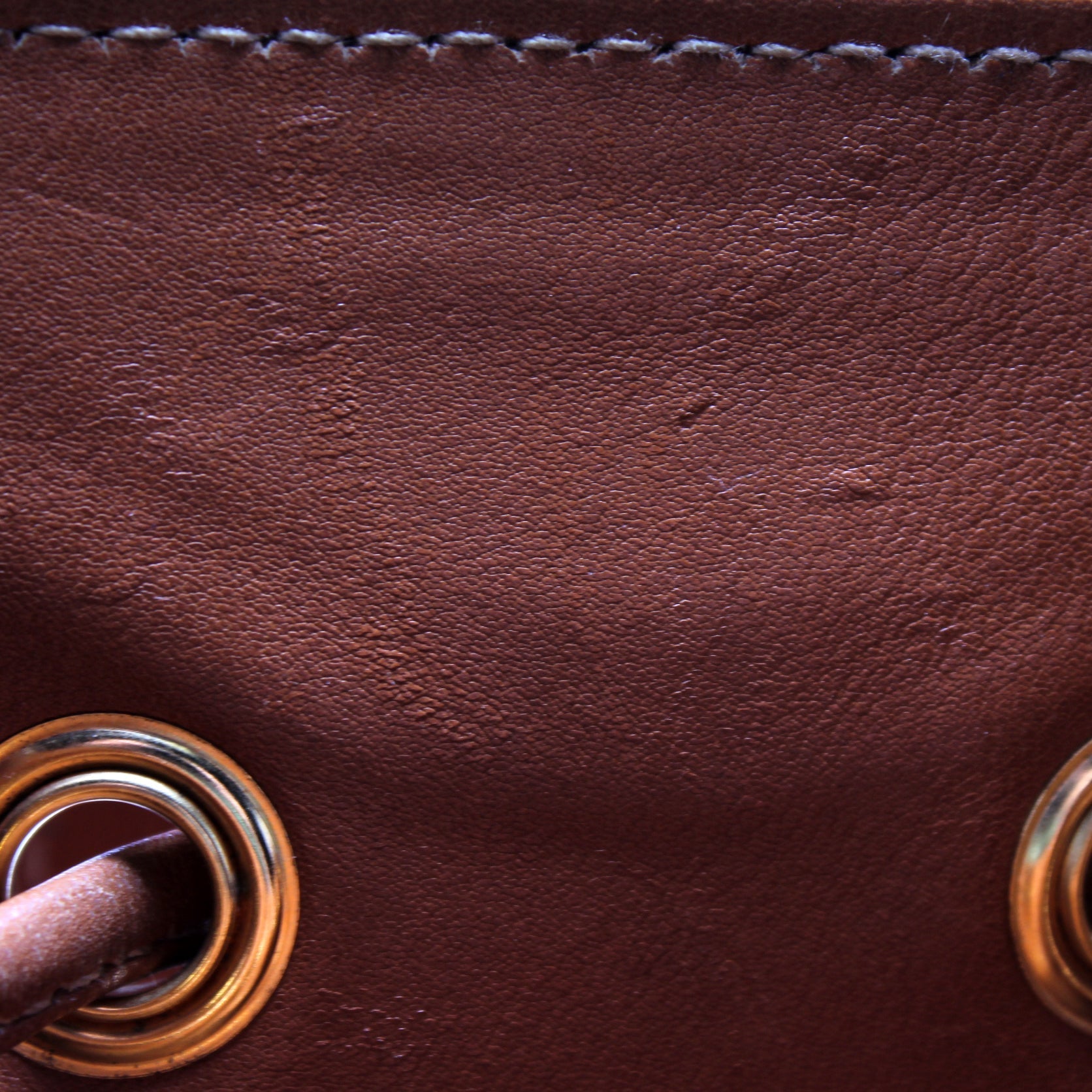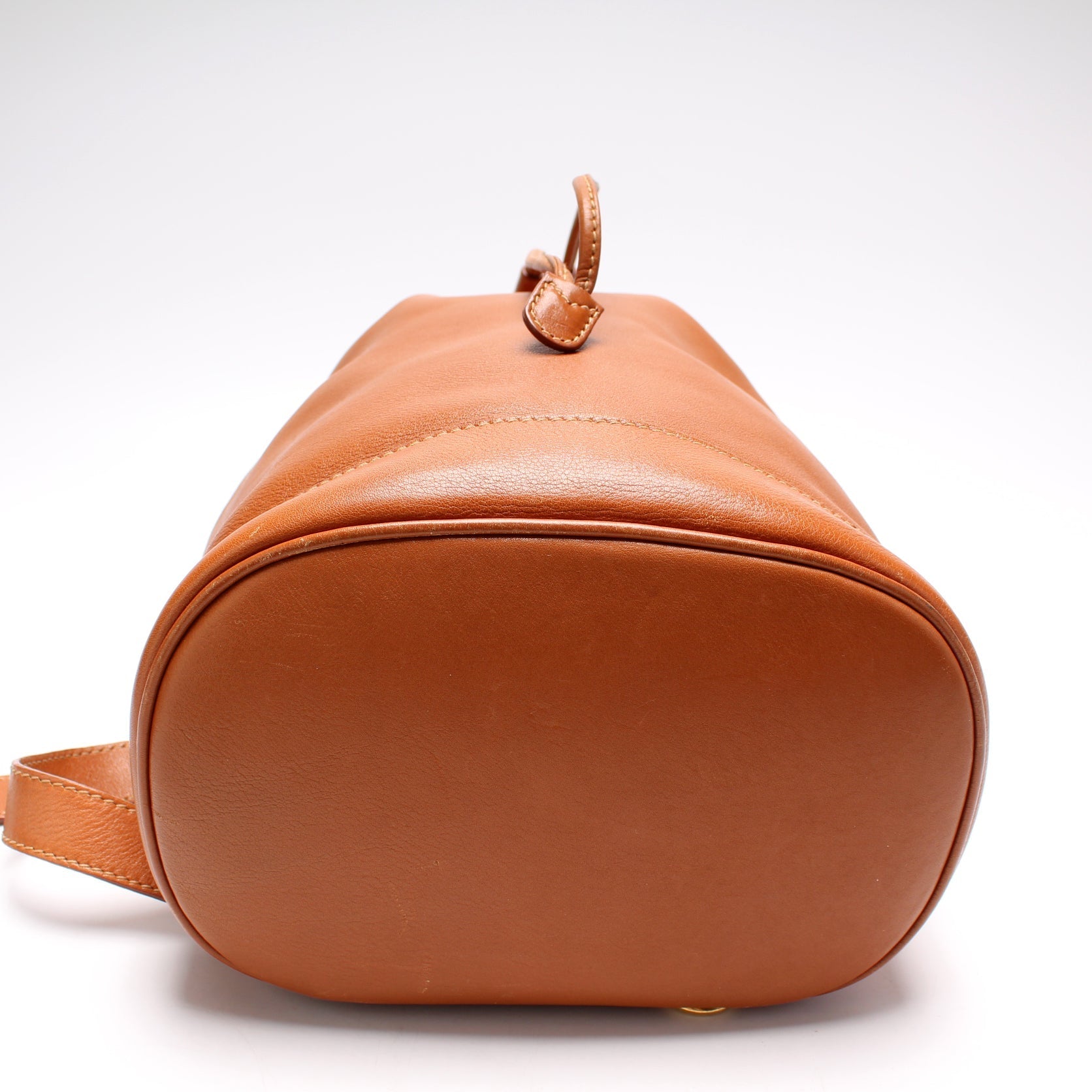 This Gucci Bamboo Leather Sling Drawstirng Backpack Vintageis eye catching bag.