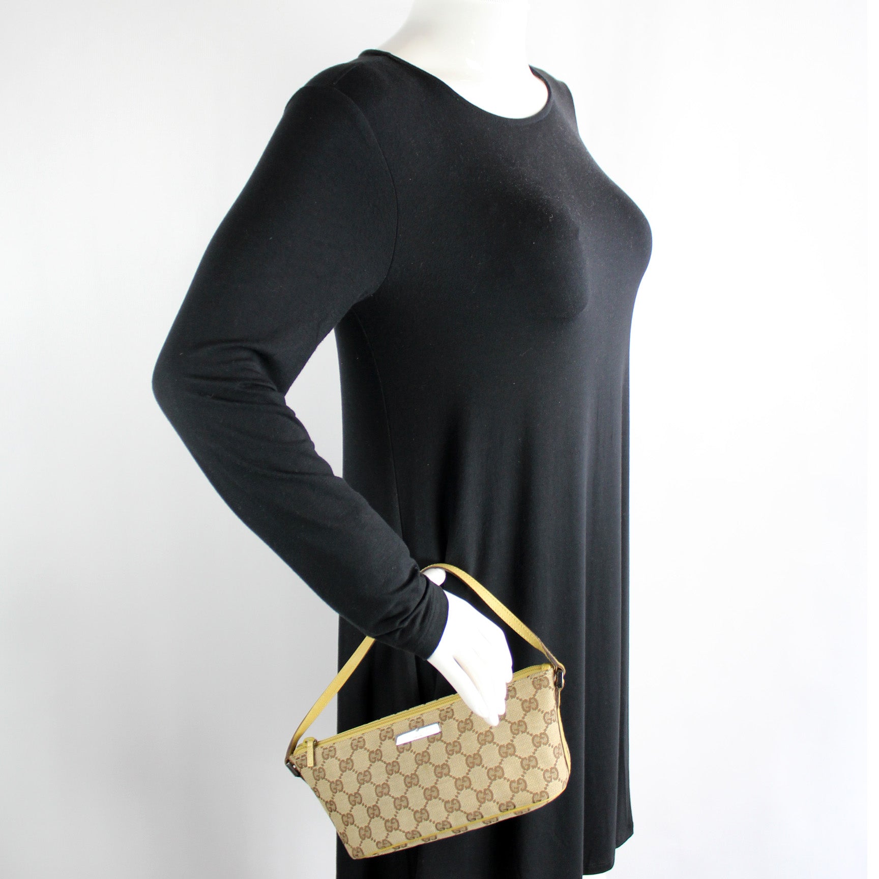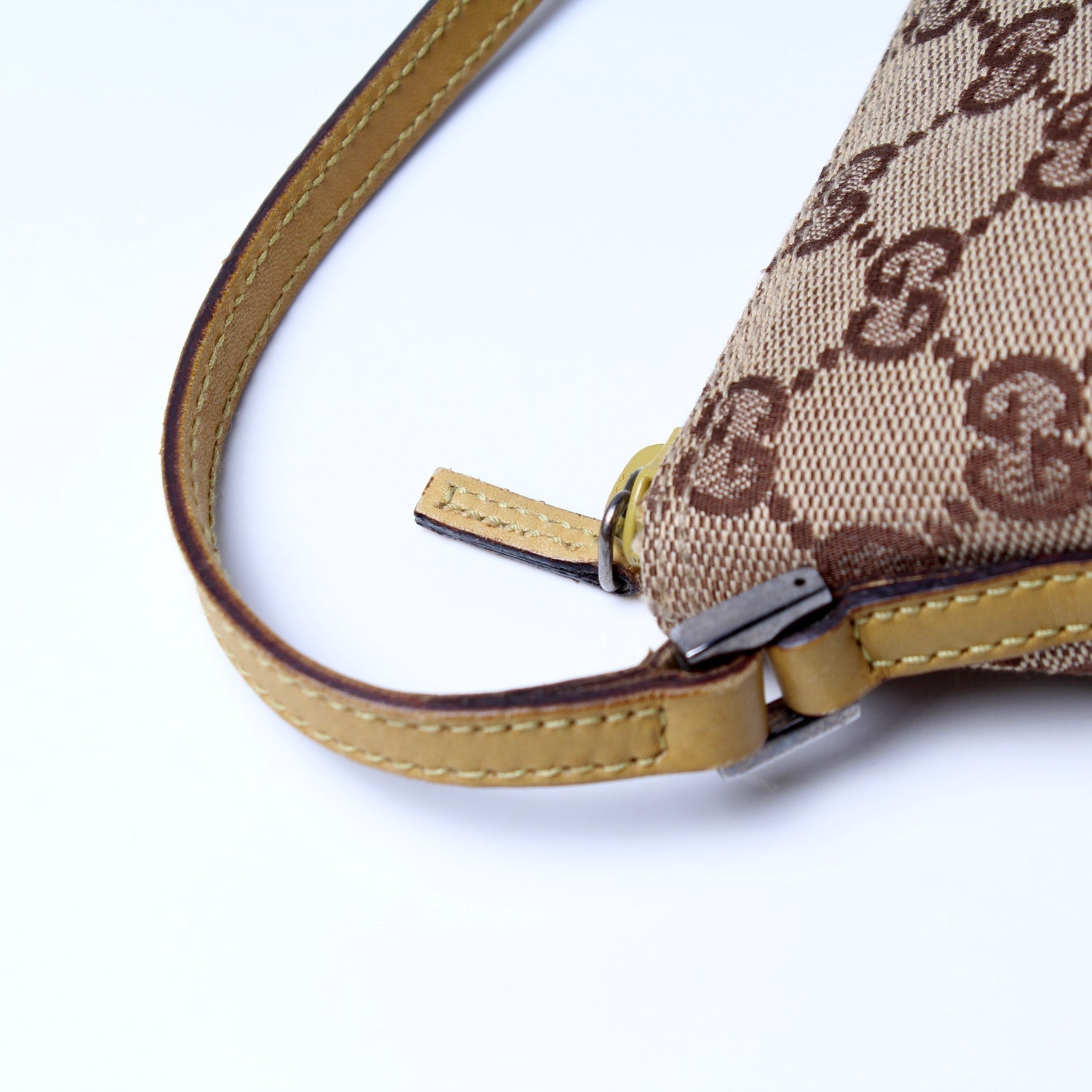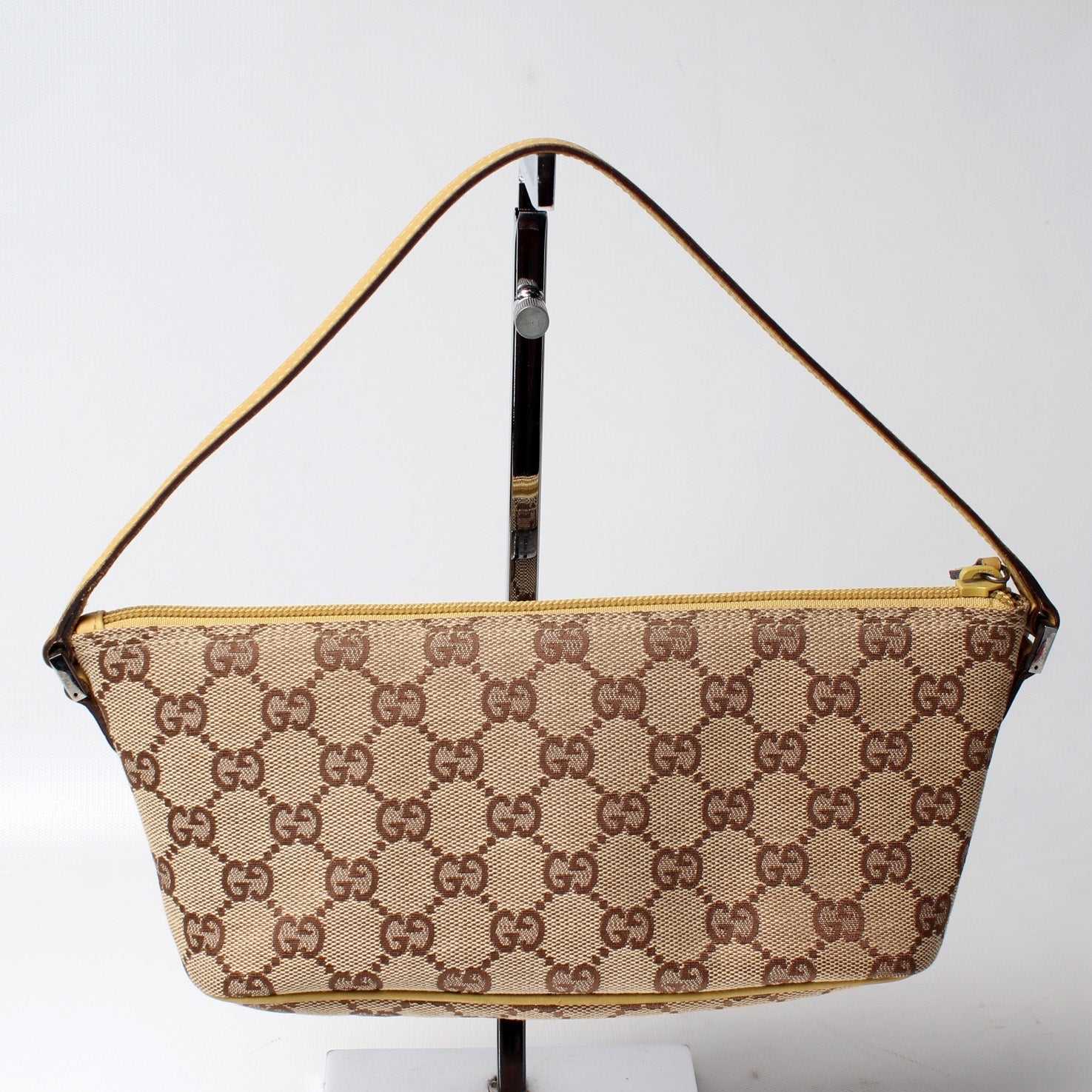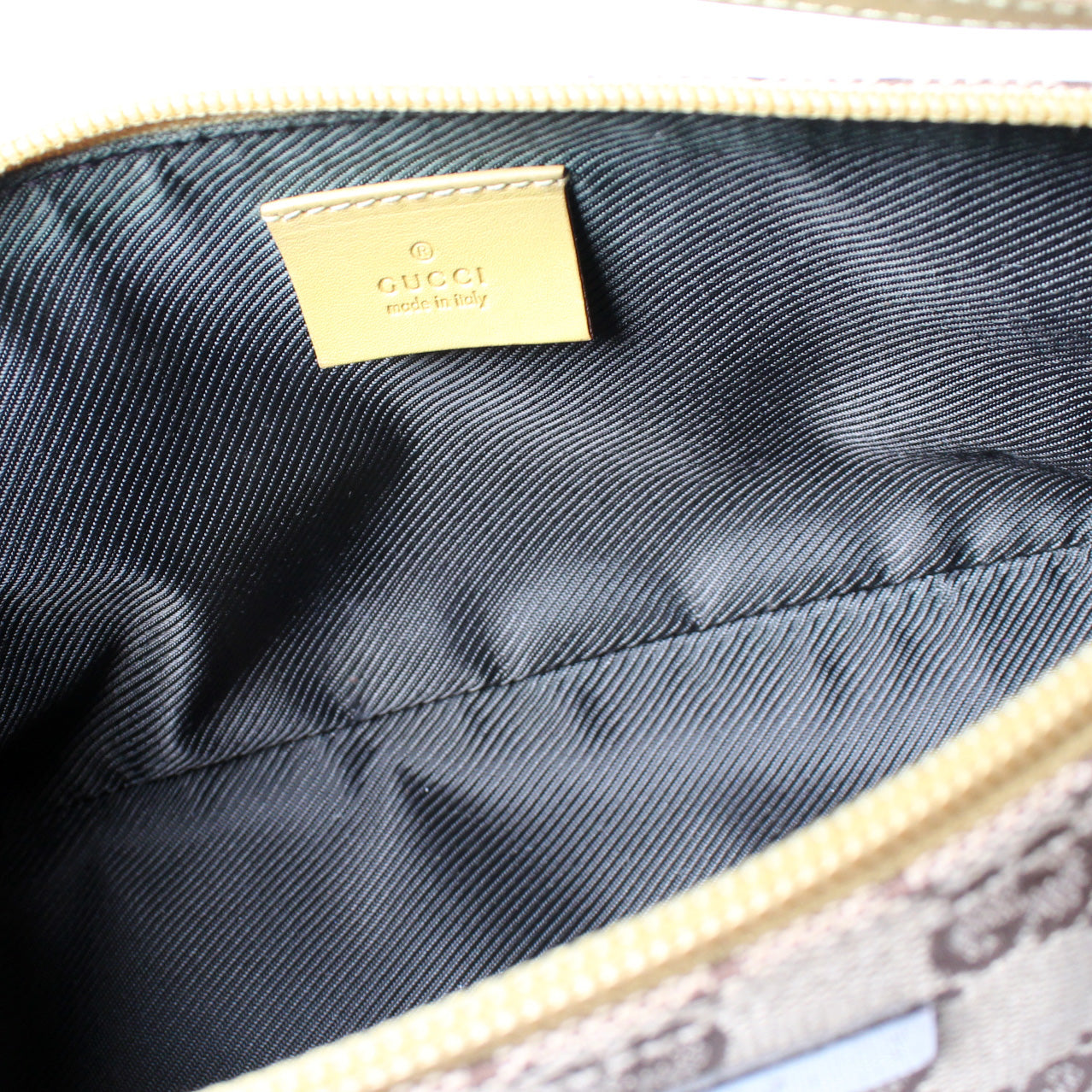 This Gucci GG Baguetteis eye catching bag. The exterior is in the classic Gucci GG canvas.