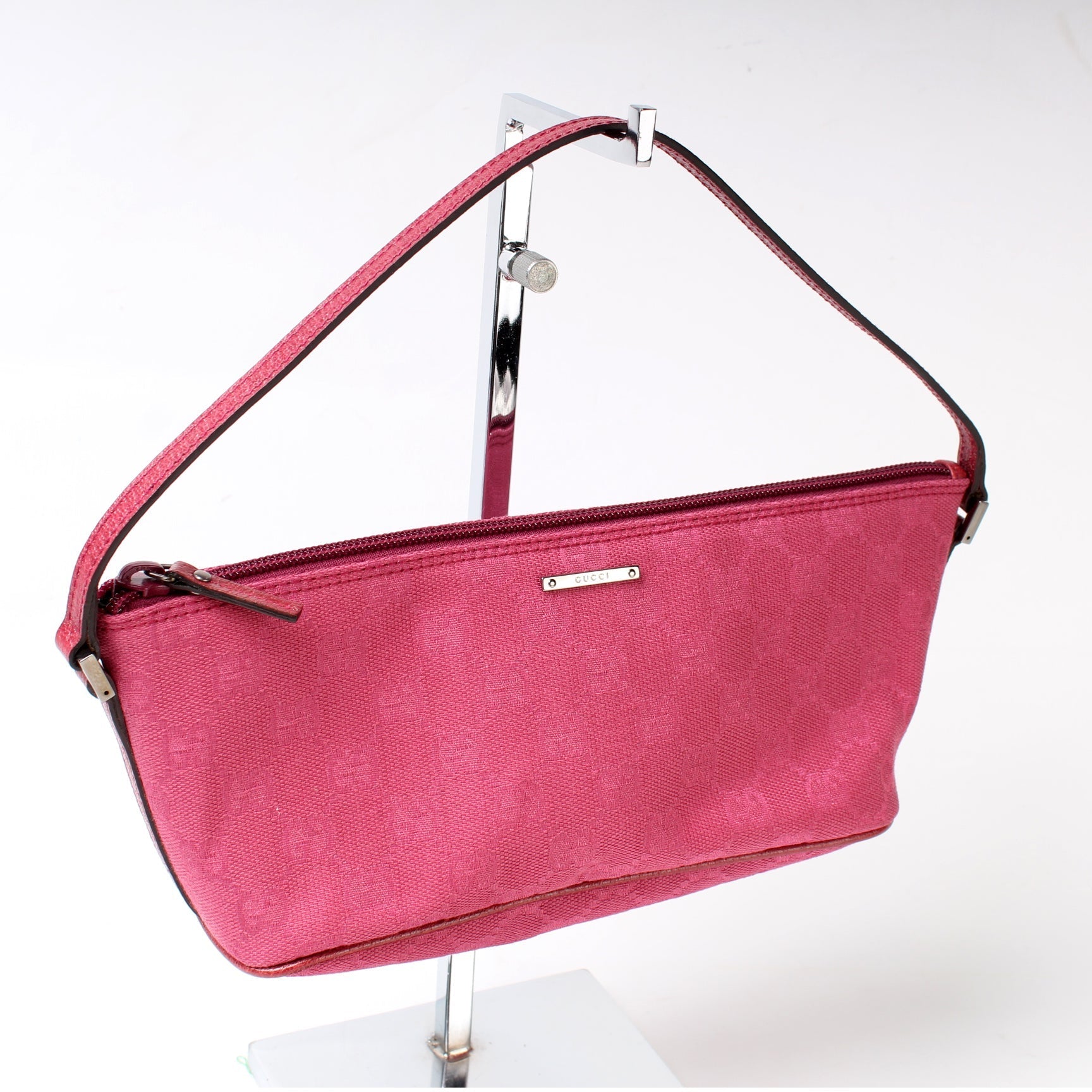 This Gucci GG Baguetteis eye catching bag. The exterior is in the classic Gucci GG canvas.