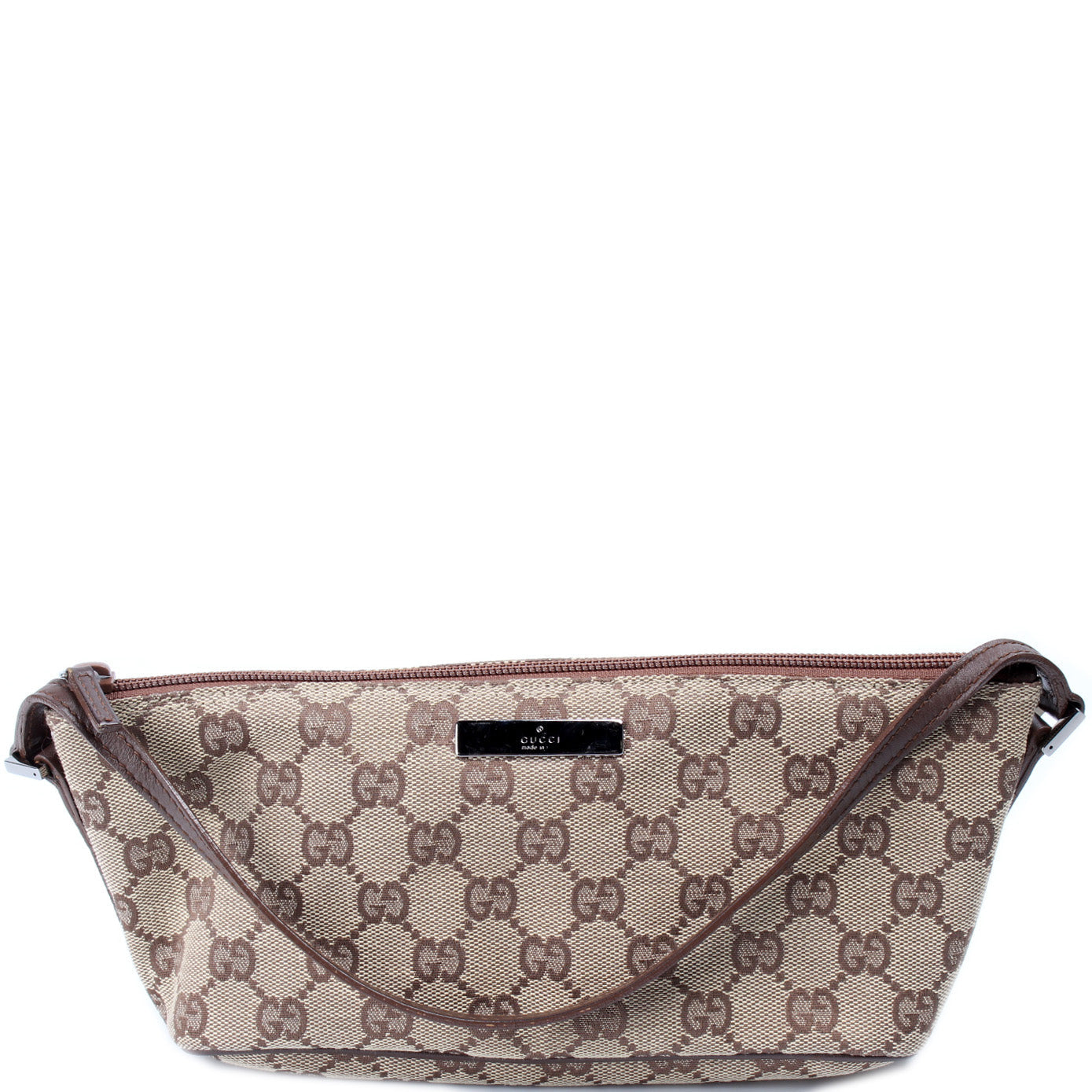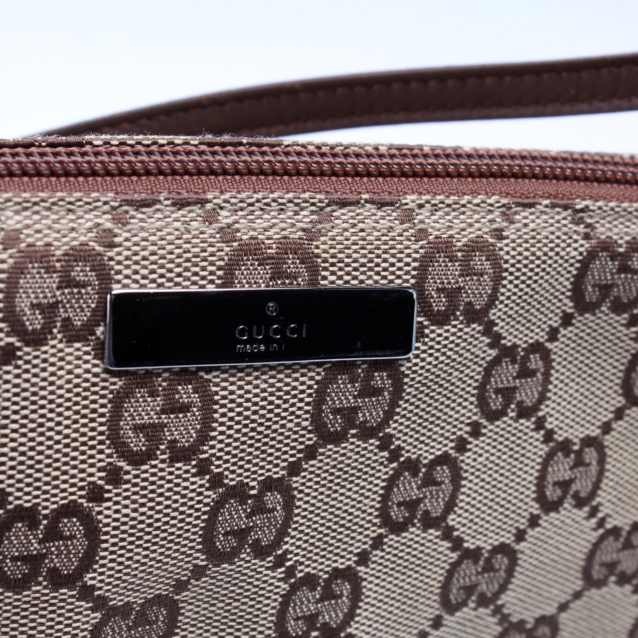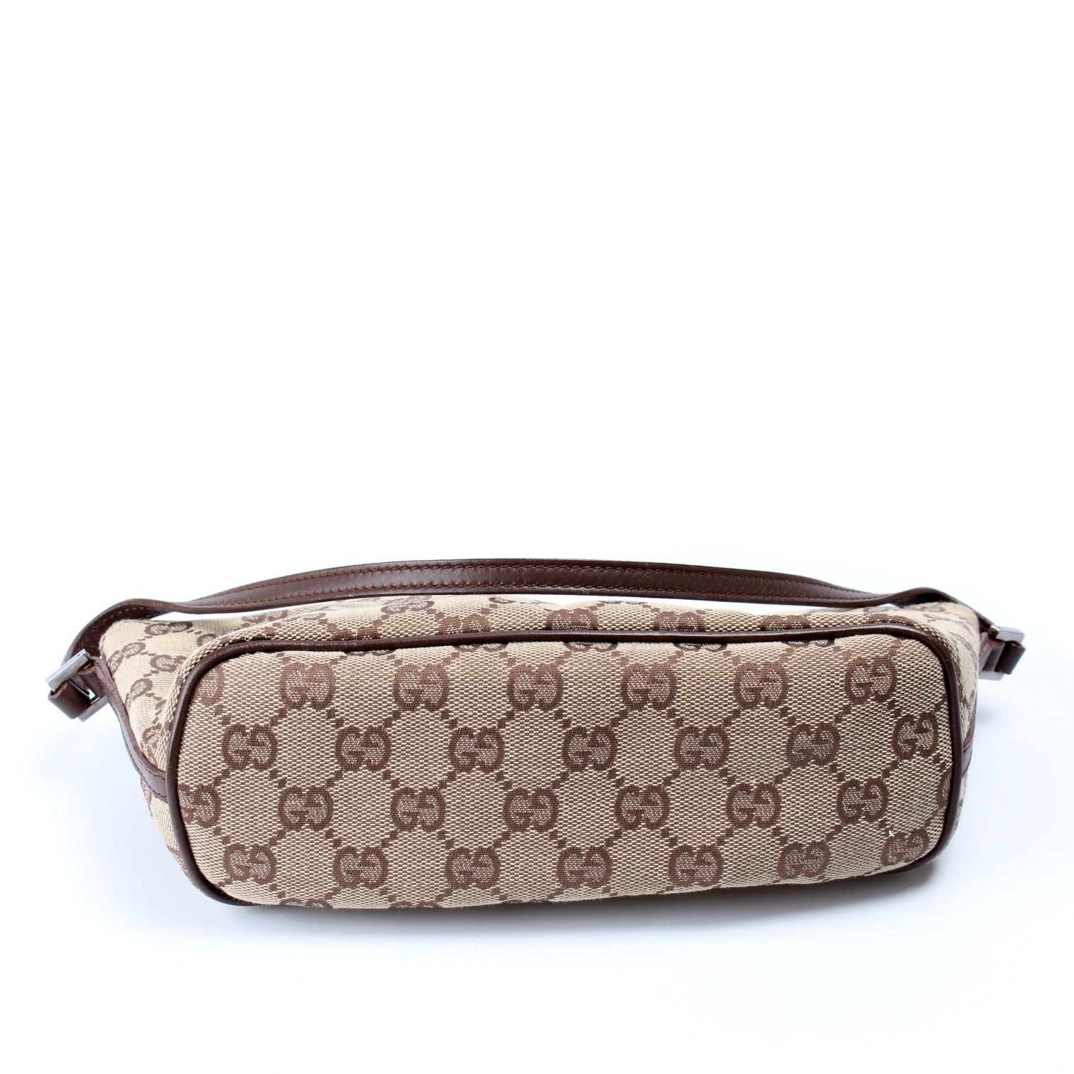 This Gucci Baguette Shoulder is guaranteed 100% authentic. The exterior is in the classic Gucci GG canvas.