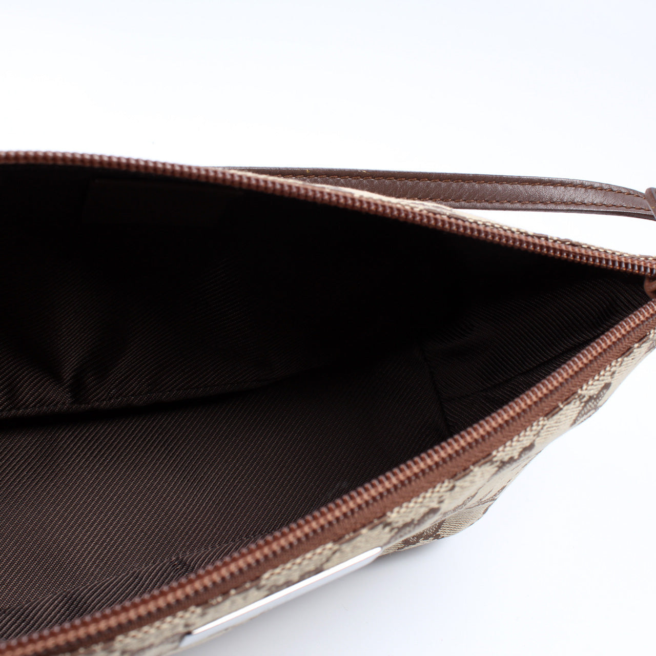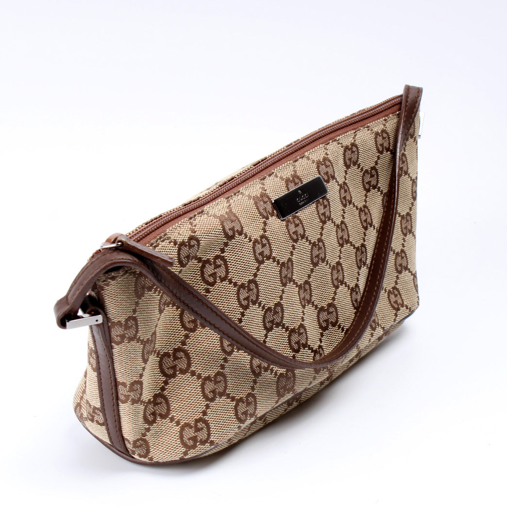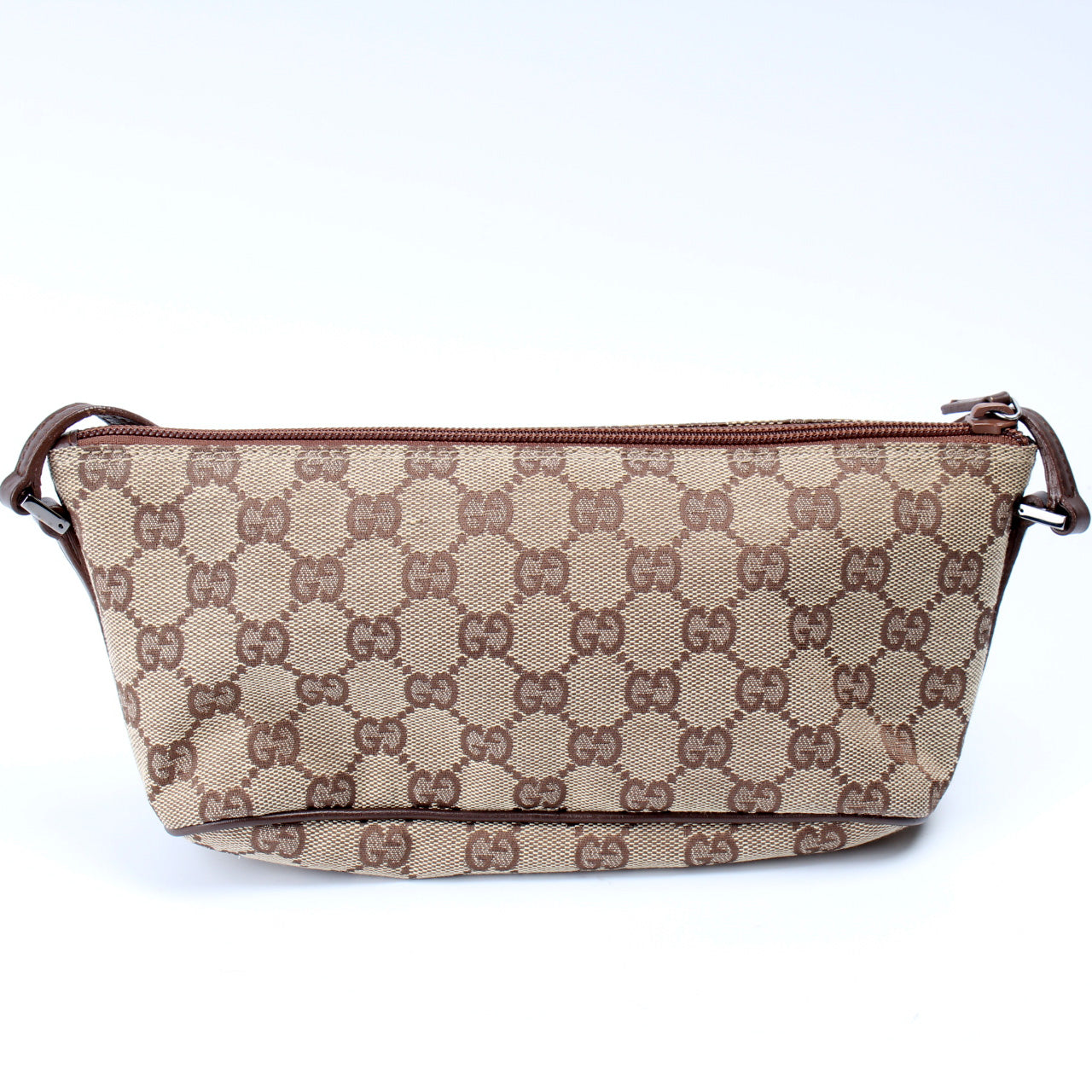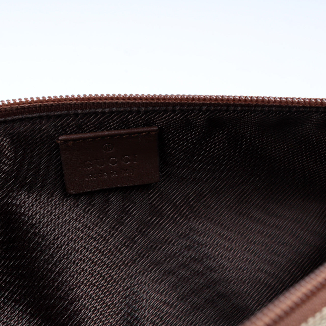 This Gucci Baguette Shoulder is guaranteed 100% authentic. The exterior is in the classic Gucci GG canvas.