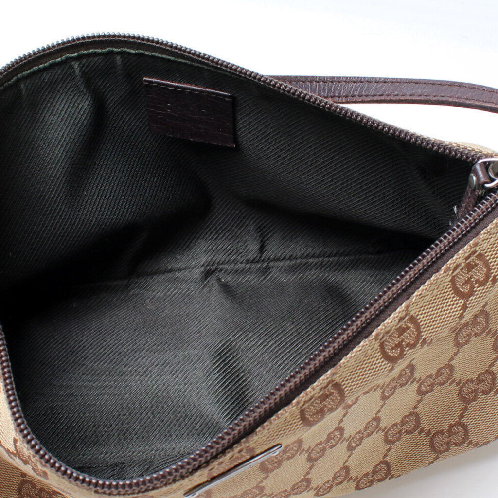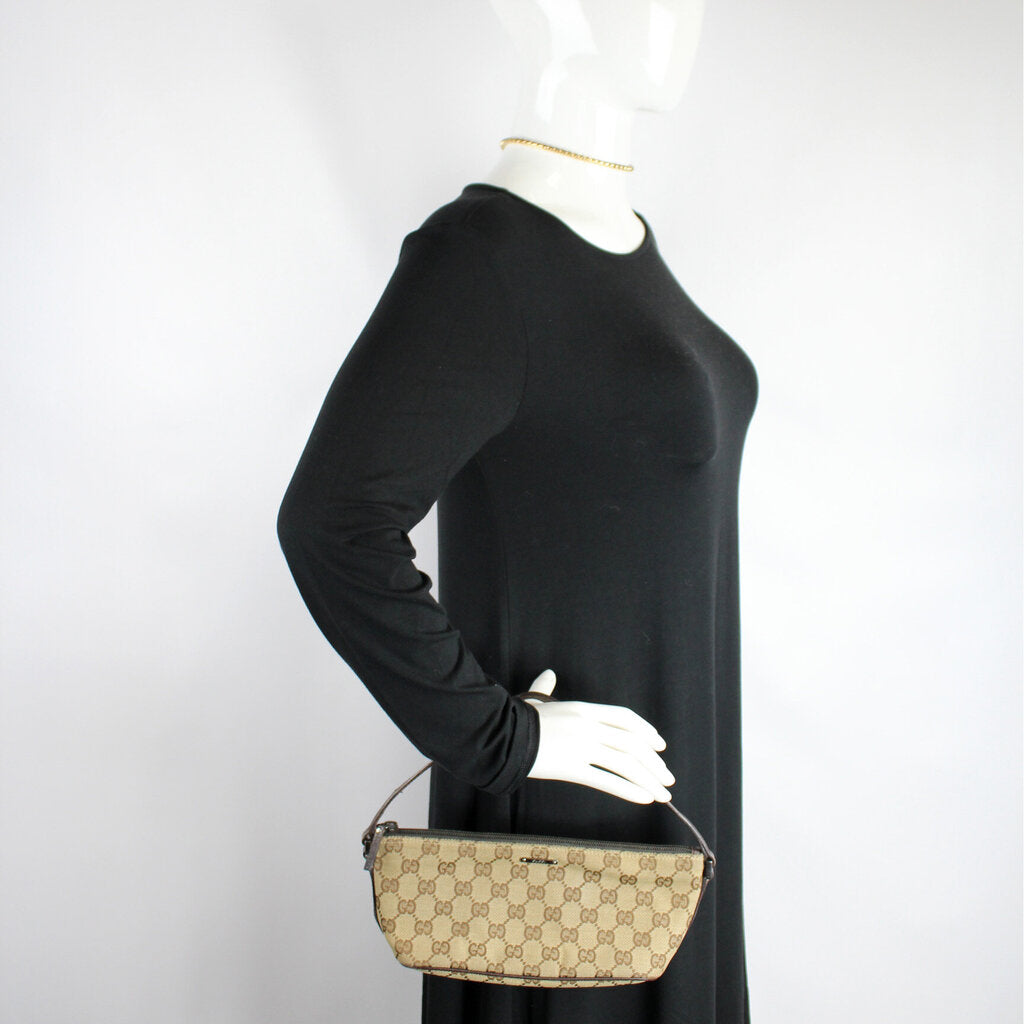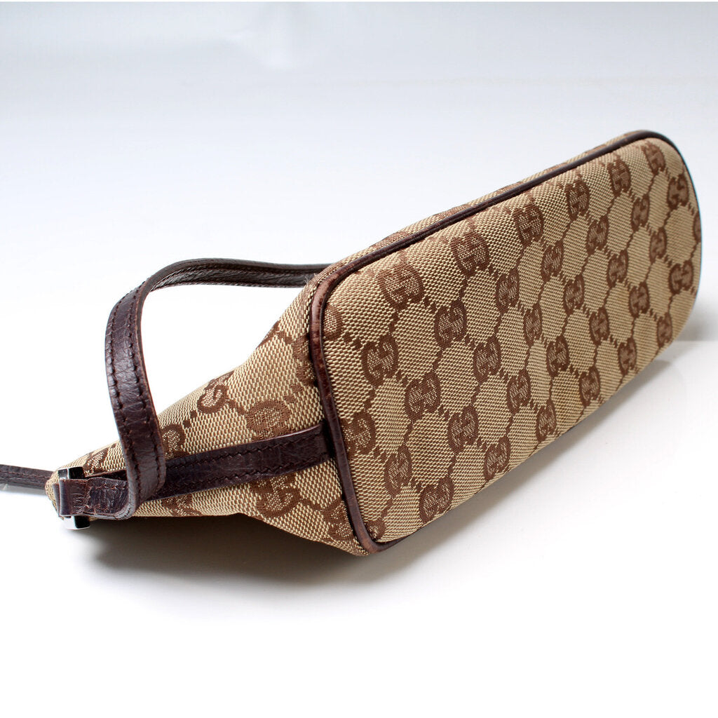 This Gucci Baguette Shoulder is guaranteed 100% authentic. The exterior is in the classic Gucci GG canvas.
