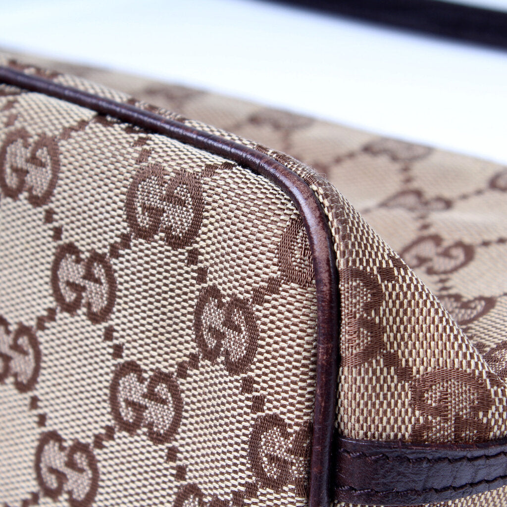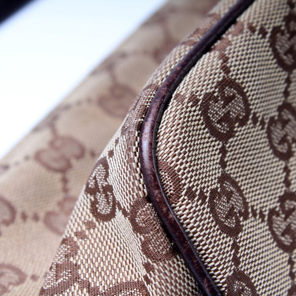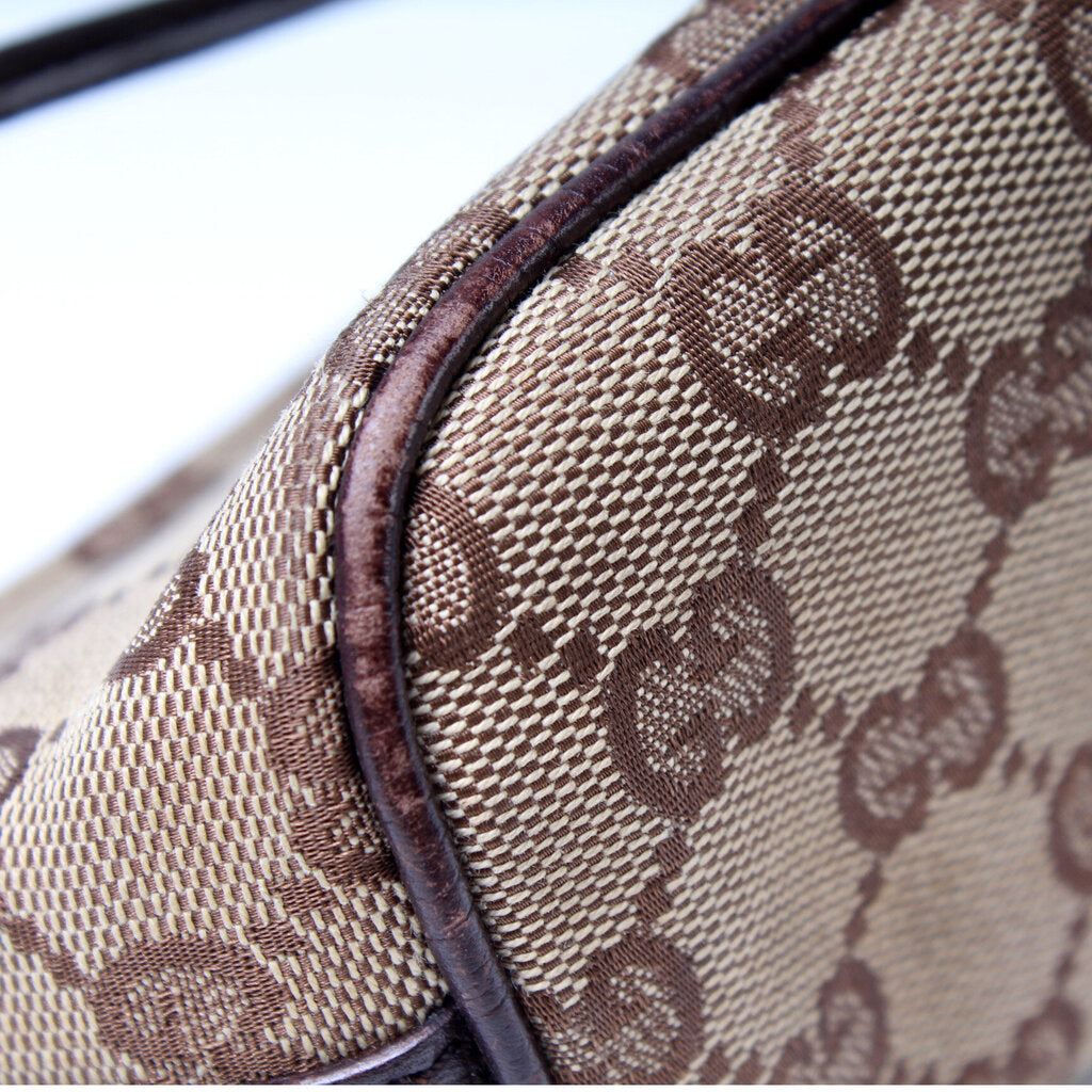 This Gucci Baguette Shoulder is guaranteed 100% authentic. The exterior is in the classic Gucci GG canvas.