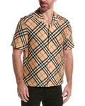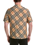 - Check Oversized Silk Shirt In Sand With Camp Collar