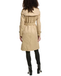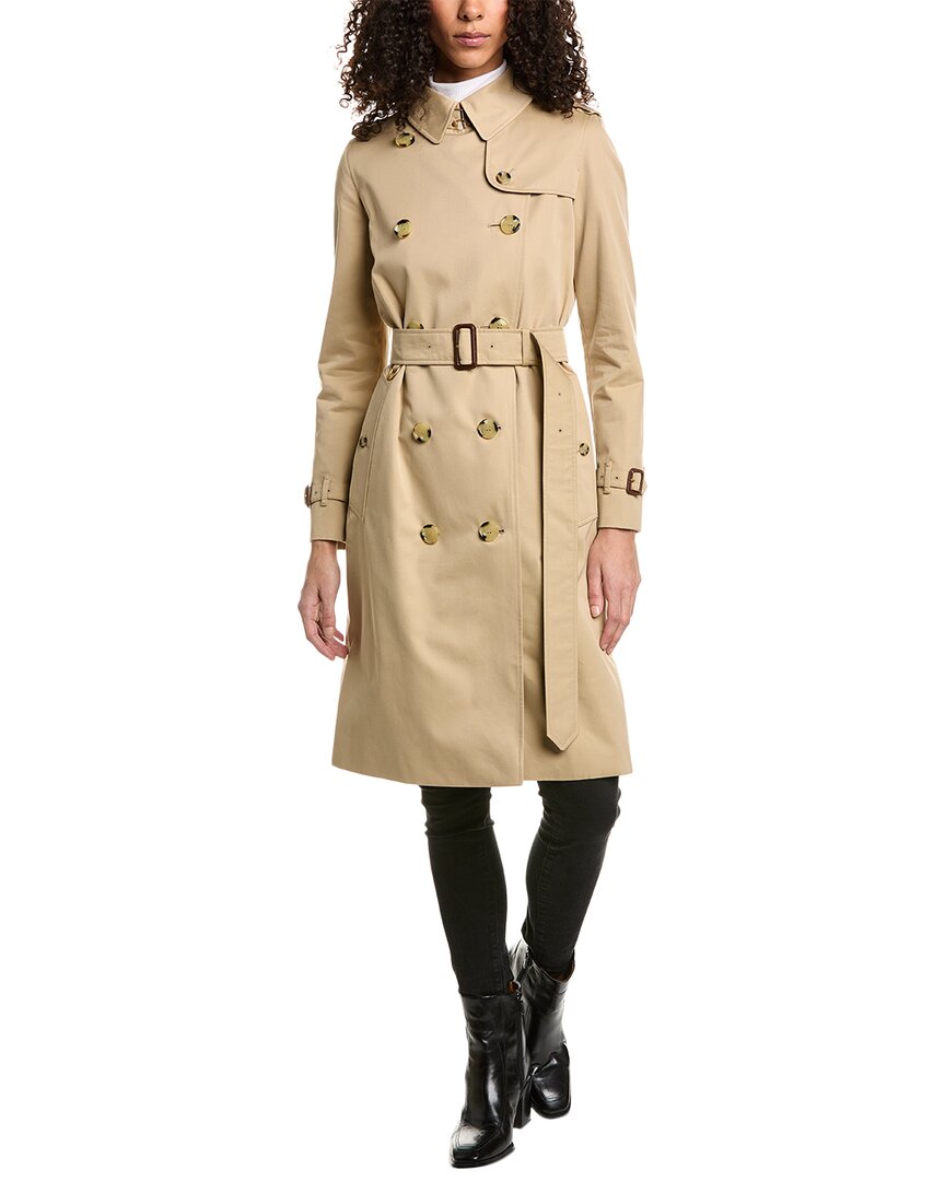 - The Kensington Trench Coat In Honey With Epaulette Details, Two Front Pockets, Buckle Straps At Cuffs, Belted Waist, And Vented Back