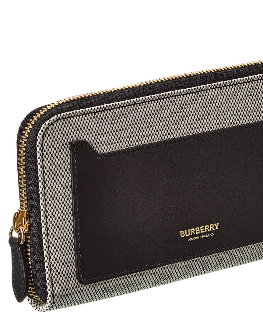 Burberry Logo Canvas & Leather Zip Around Wallet