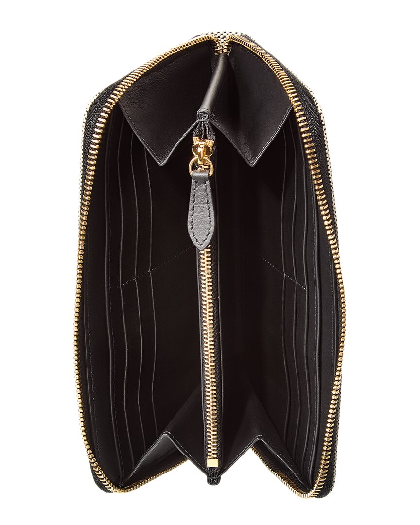 - Logo Canvas & Leather Zip Around Wallet In Black Canvas And Leather And Gold-Tone Hardware With Exterior Pocket