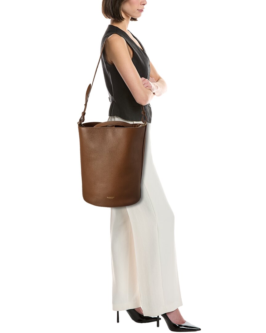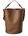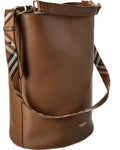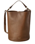 - Logo Medium Leather Bucket Bag In Beige Leather And Gold-Tone Hardware With Printed Strap And Handle