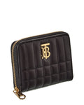 - Logo Leather Coin Purse In Black Quilted Leather And Gold-Tone Hardware With Monogram Accent