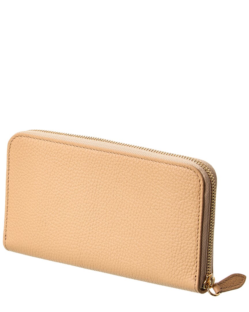 - Logo Leather Zip Around Wallet In Brown Leather And Gold-Tone Hardware