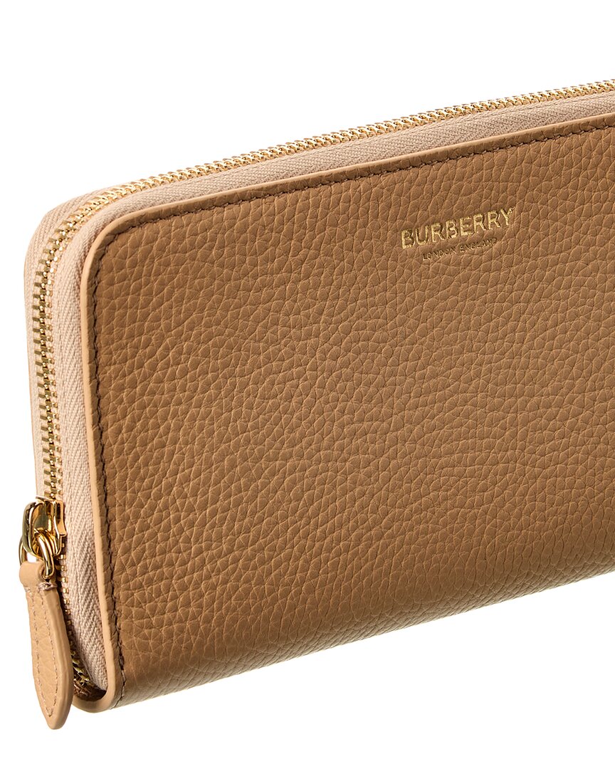 Burberry Logo Leather Zip Around Wallet