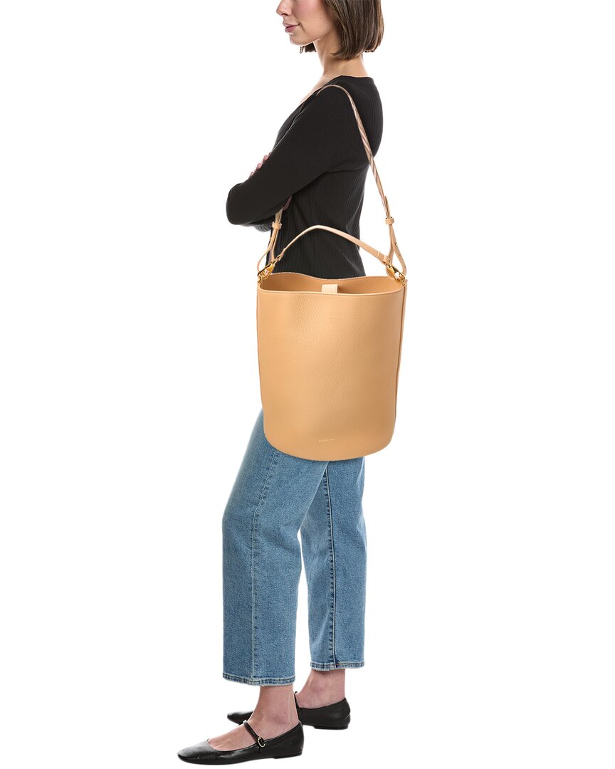 - Medium Leather Bucket Bag In Light Almond Leather With Gold-Tone Hardware