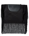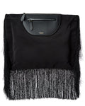 - Olympia Fringe Canvas & Leather Clutch In Black Canvas And Leather And Gold-Tone Hardware With Fringe Trim And Zippered Pocket