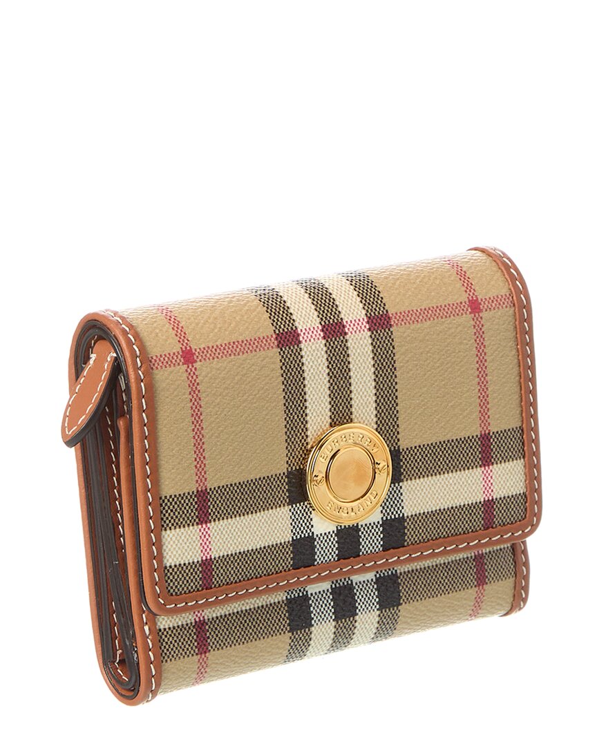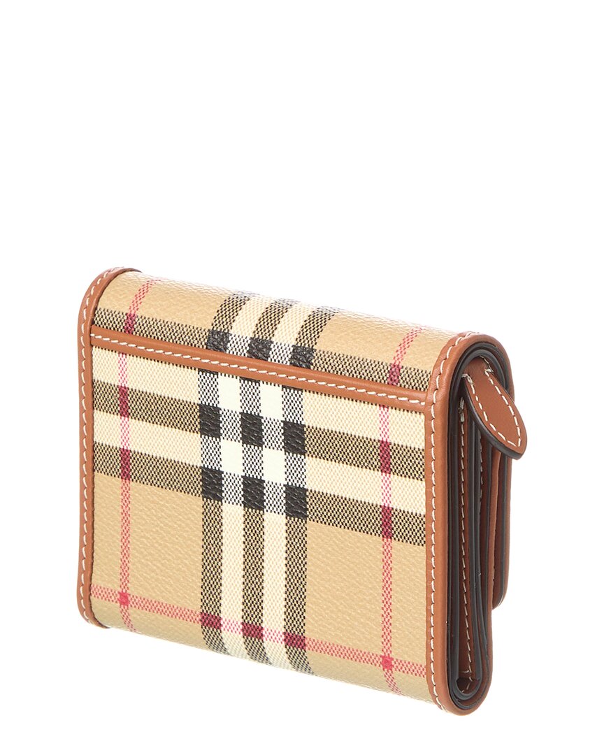 - Check E-Canvas & Leather French Wallet In Archive Beige E-Canvas And Leather And Gold-Tone Hardware