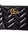 - Gg Marmont Leather Clutch In Black Matelasse Leather And Light Fine Gold Hardware With Interlocking G Logo Accent