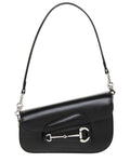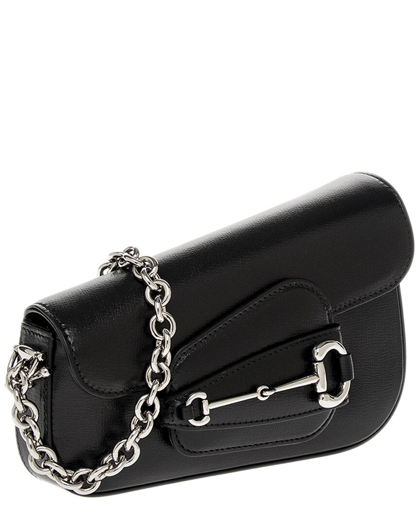 - Horsebit 1955 Mini Leather Shoulder Bag In Black Leather And Silver-Tone Hardware With Horsebit Hardware, Asymmetrical Shape, Textured Leather, Interchangeable Leather And Chain Straps