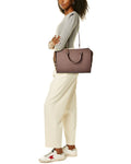 - Banwell Medium Leather & Check Canvas Satchel In Gray Mink Leather And Check Canvas And Gold-Tone Hardware