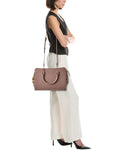 - Banwell Small Check Canvas & Leather Satchel In Nude Check Canvas And Leather And Gold-Tone Hardware