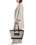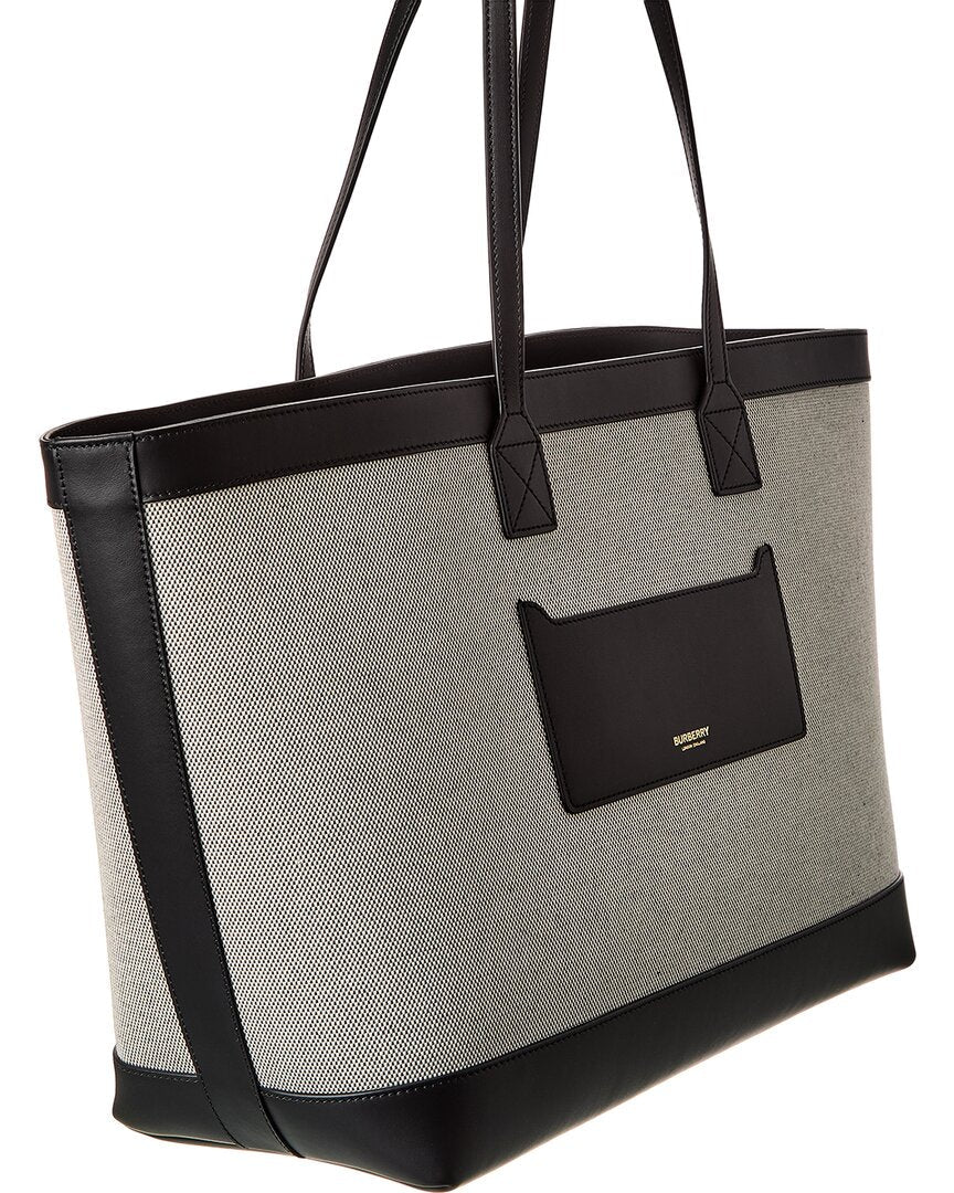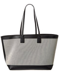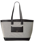 - Logo Canvas & Leather Tote In Black Canvas And Leather And Gold-Tone Hardware With Exterior Pocket