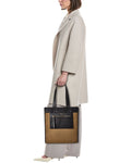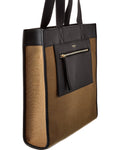 - Logo Canvas & Leather Tote In Brown Canvas And Leather And Gold-Tone Hardware With Zippered Pocket