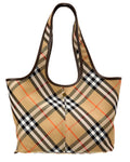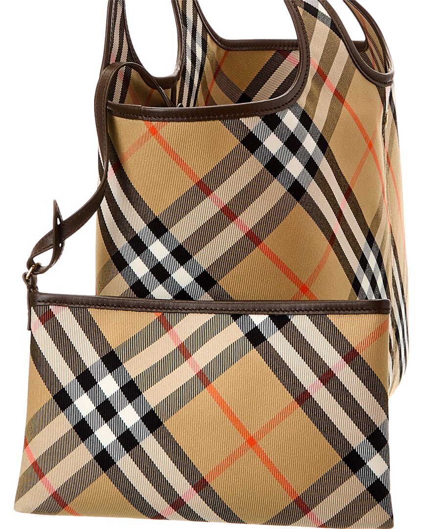 - Check Small Canvas & Leather Tote In Sand Check Canvas And Leather With Gold-Tone Hardware