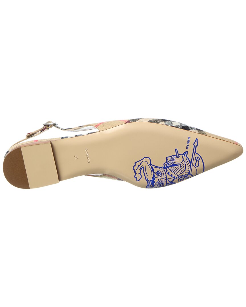 - Dame Check Linen Slingback Flat In Sand Check Linen And Silver-Tone Hardware
