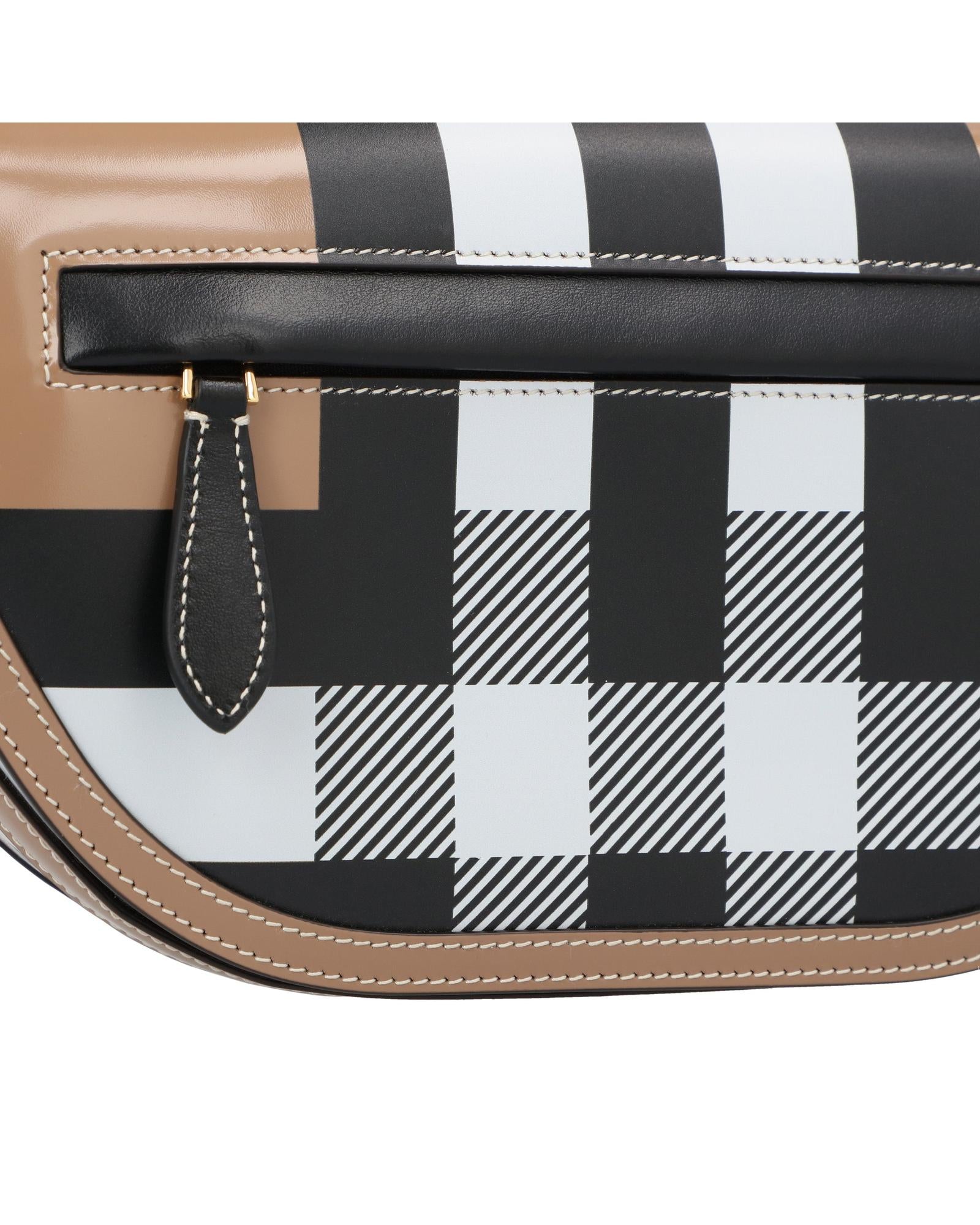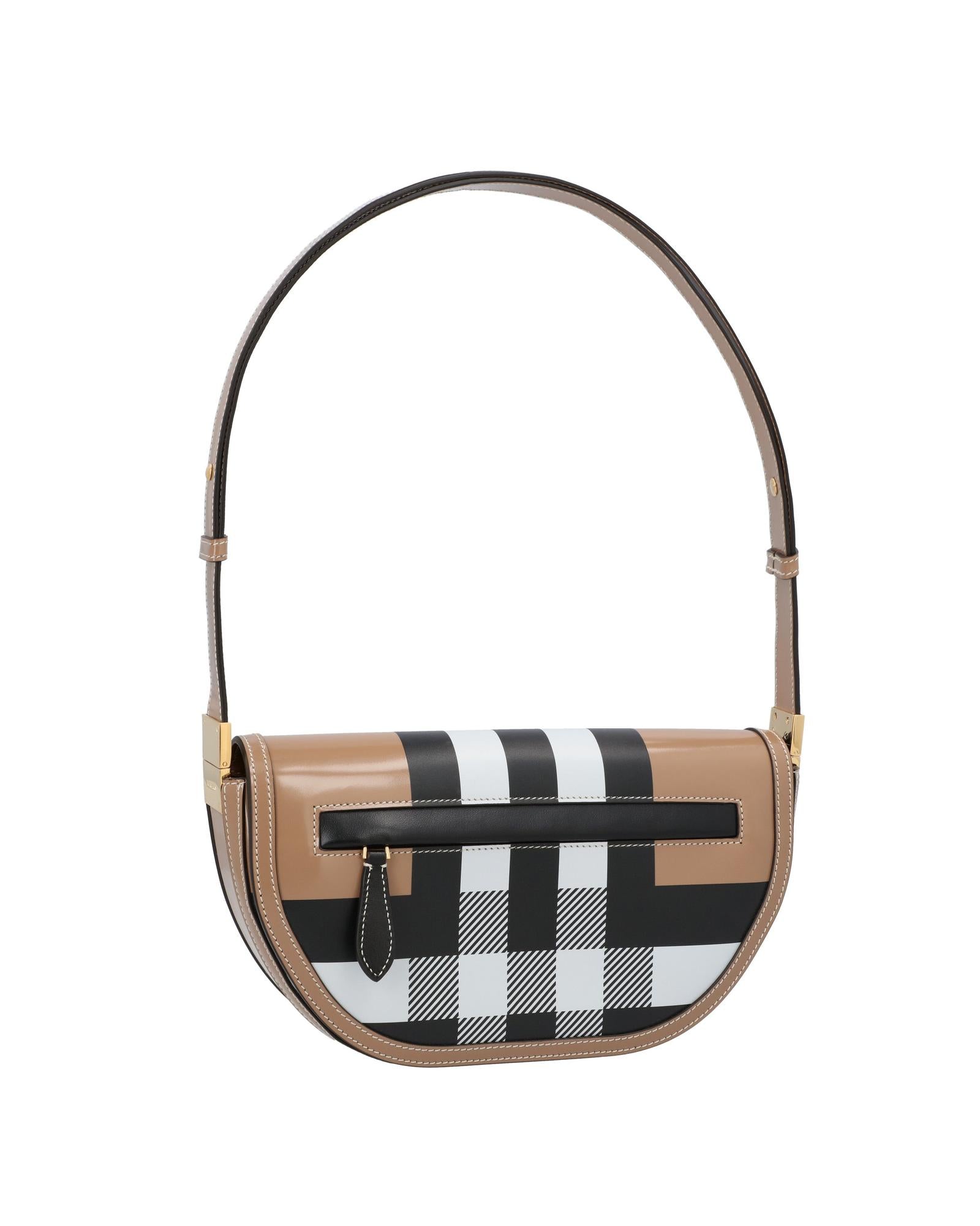 This halfmoon shoulder bag is a perfect blend of style and functionality Crafted from highquality leather it showcases a timeless checked pattern and boasts multiple interior compartments and pockets to keep your essentials organized The adjustable strap ensures a comfortable carry while the zip closure provides secure storage. Leather | Leather