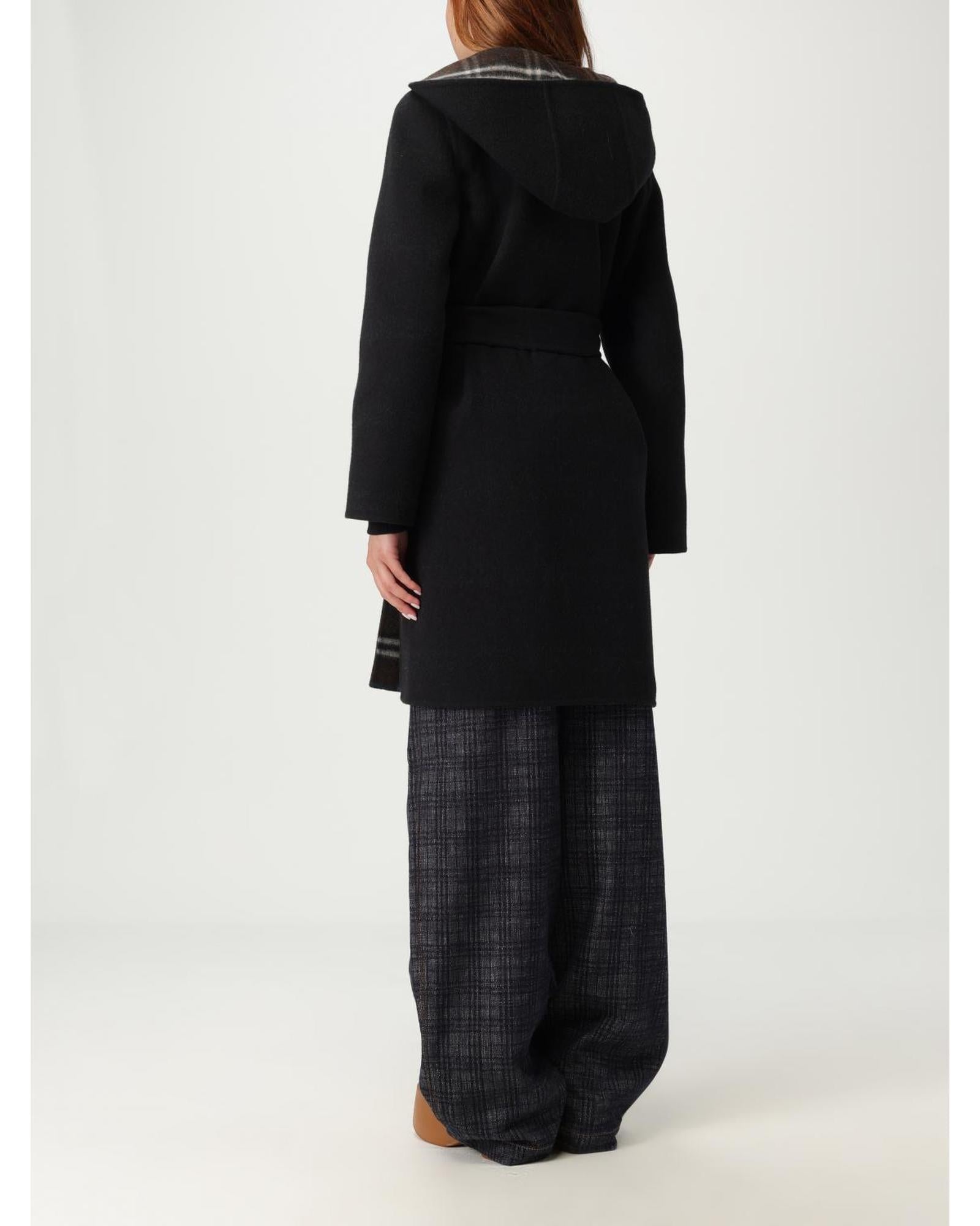 This Burberry black wool coat is a sophisticated and timeless outerwear piece Featuring a belted closure for a flattering silhouette and a comfortable hood it perfect for everyday wear The coat is made from 100 wool and should be dry cleaned to maintain its quality. Product: Black wool coat with belted closure and hood from Burberry. Features belted closure and a hood. Made from 100% wool. Ideal for everyday wear. . Wool