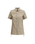 Burberry Short Sleeve Checked Shirt Side Lace Detail Women Brown