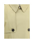 This classic trench coat is a wardrobe staple for women who appreciate timeless style and quality craftsmanship Made from pure cotton this luxurious coat features a doublebreasted closure notched lapel collar and long sleeves The elegant design is perfect for any occasion and adds a touch of sophistication to any outfit. Cotton