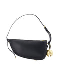 Burberry Curved Leather Shoulder Bag with Bell Detail Women Black