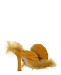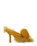 Heel height: 3.625" | Slides on | Large velvet rose detail at vamp | Square toe | Shearling trim; Quilted design on the insole | Specialist clean only | Upper: 97% Cotton, 3% Goatskin leather; Cont: 100% Shearling; Lower: 100% Calfskin leather | Made in Italy
