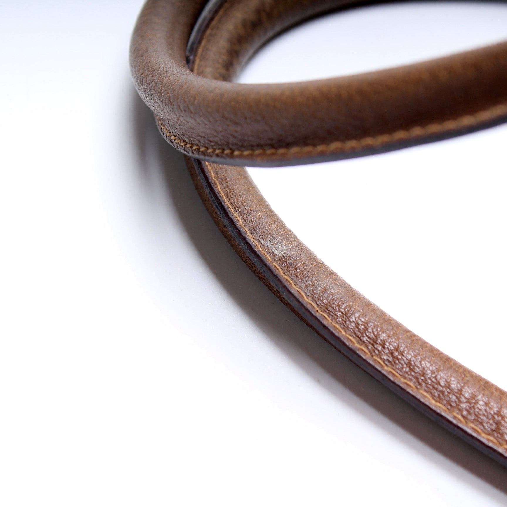 Handle: The leather handles show minor signs of wear and some scuffing.