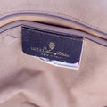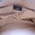 Exterior: The exterior coated canvas shows minor scuffs throughout. The leather trim shows minor wear and discoloration throughout. The corners show heavy rubbing. The exterior features one open pocket.