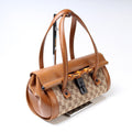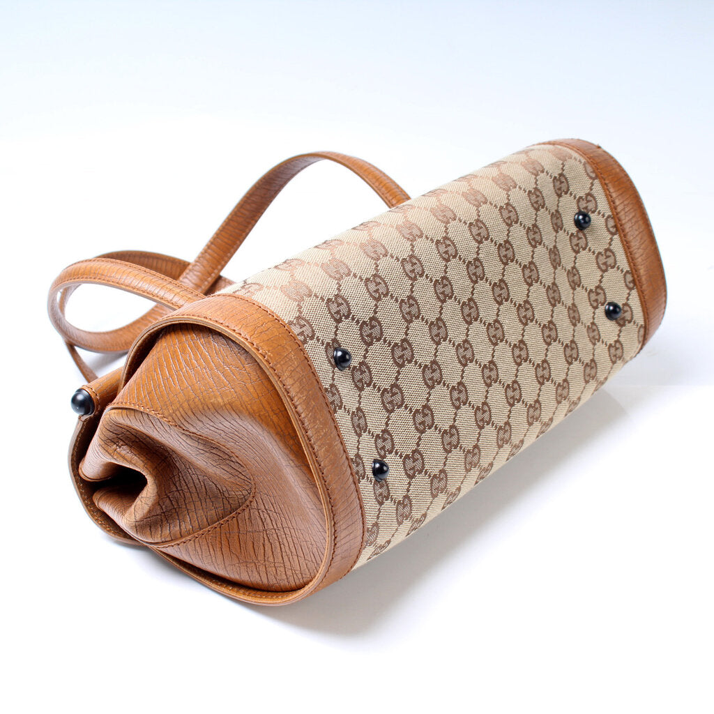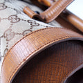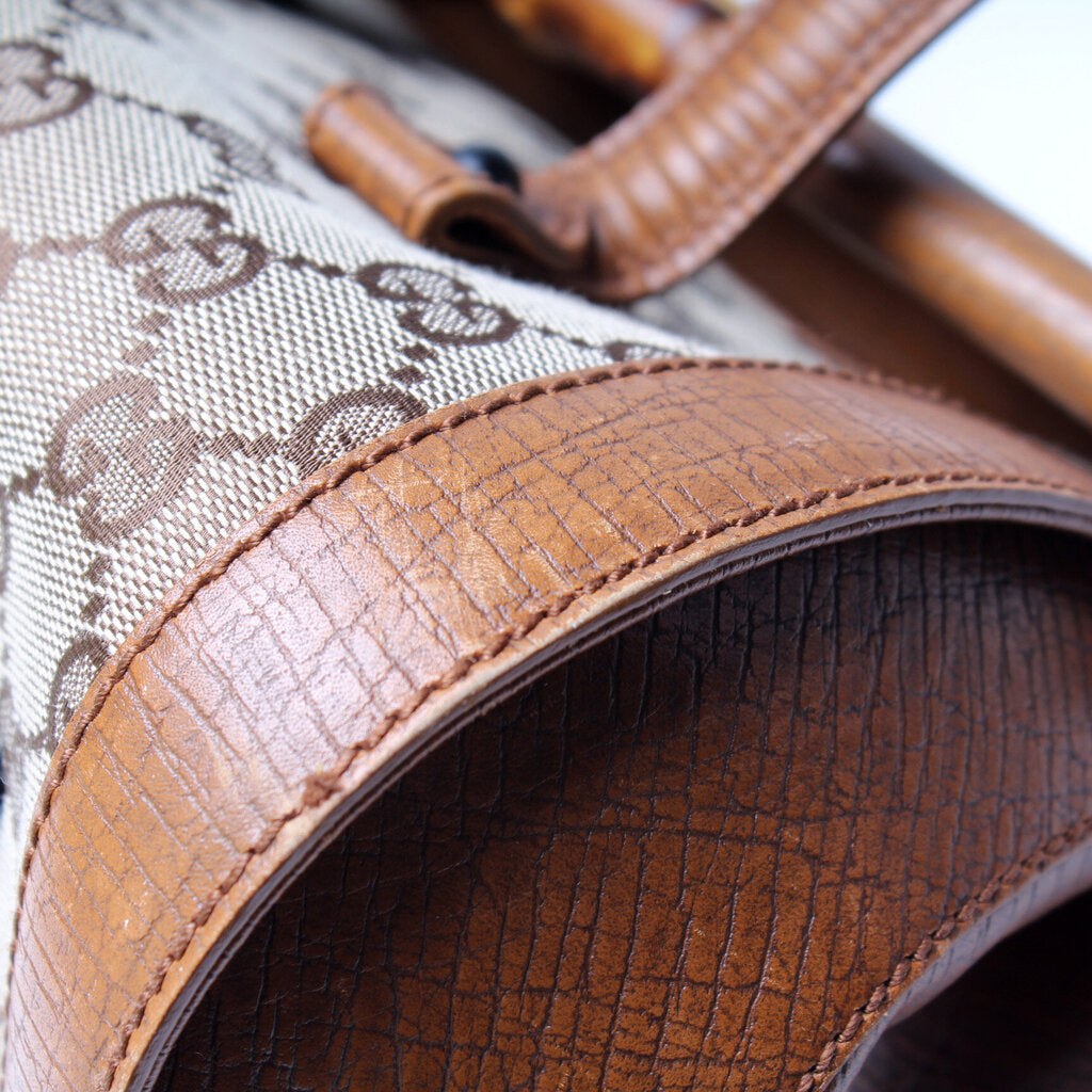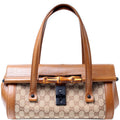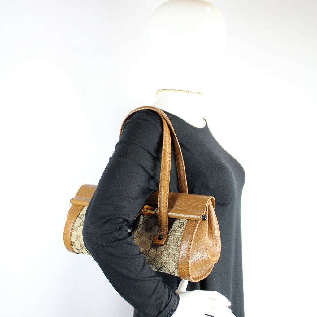 This Gucci Bamboo Bulletis eye catching bag. The exterior is in the classic Gucci GG canvas.