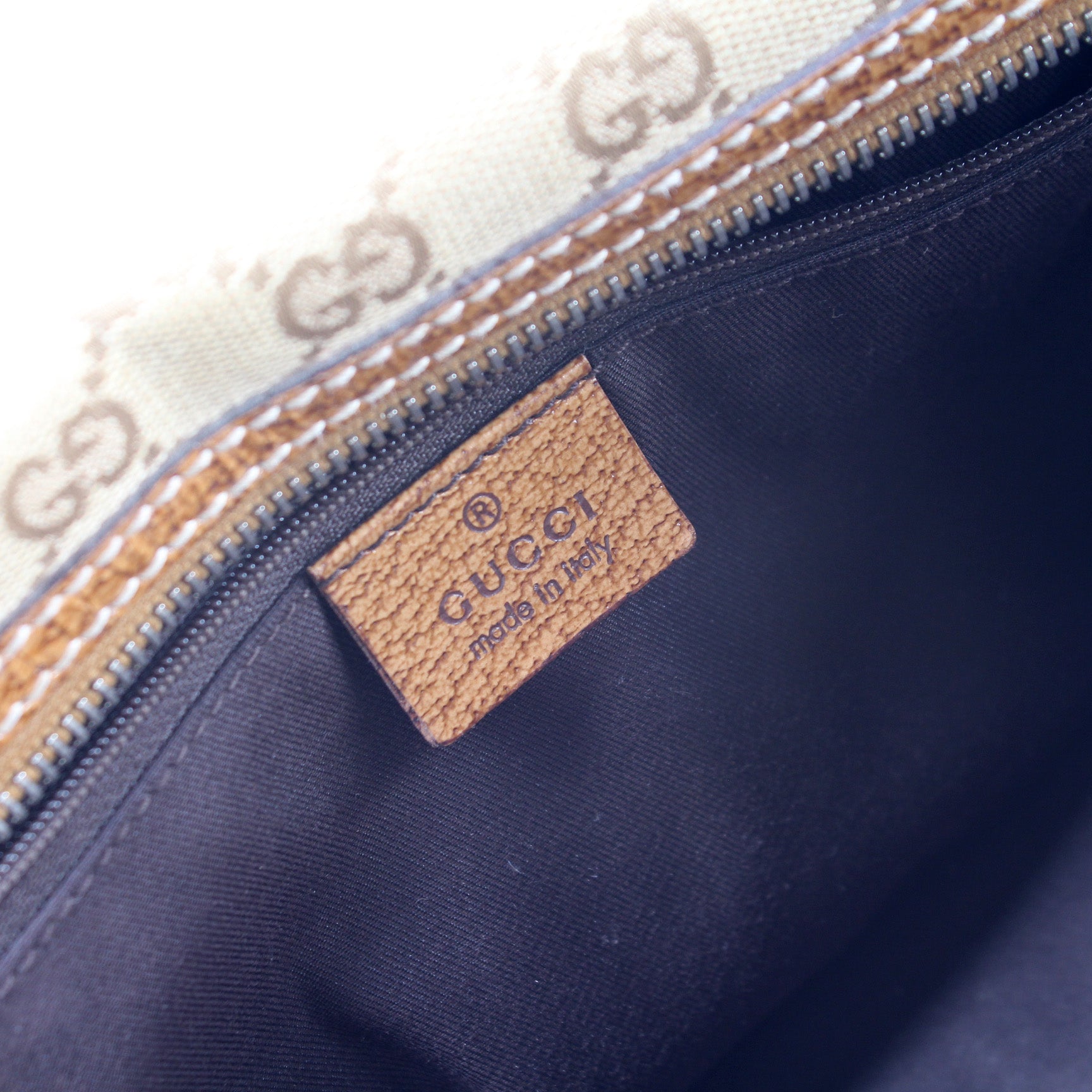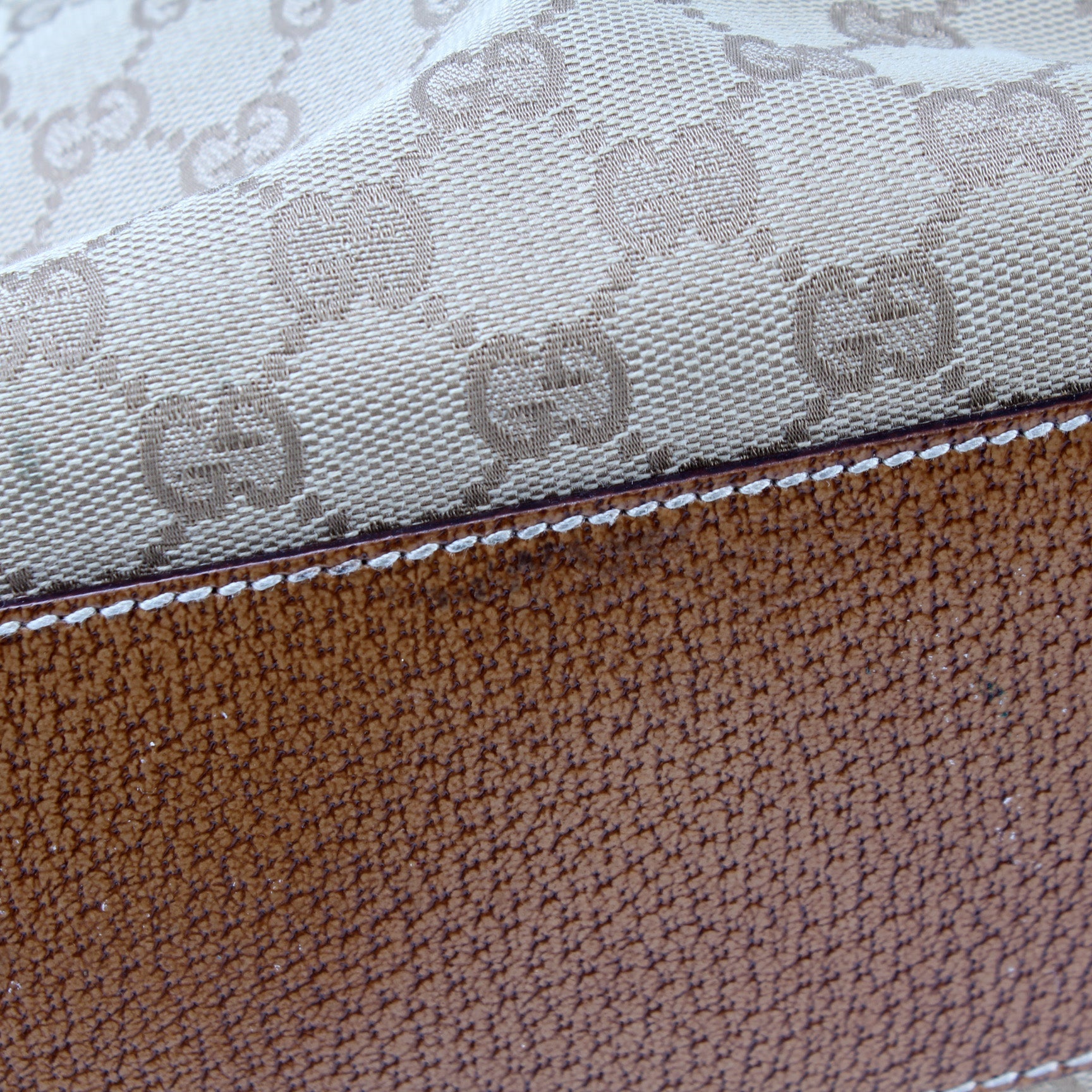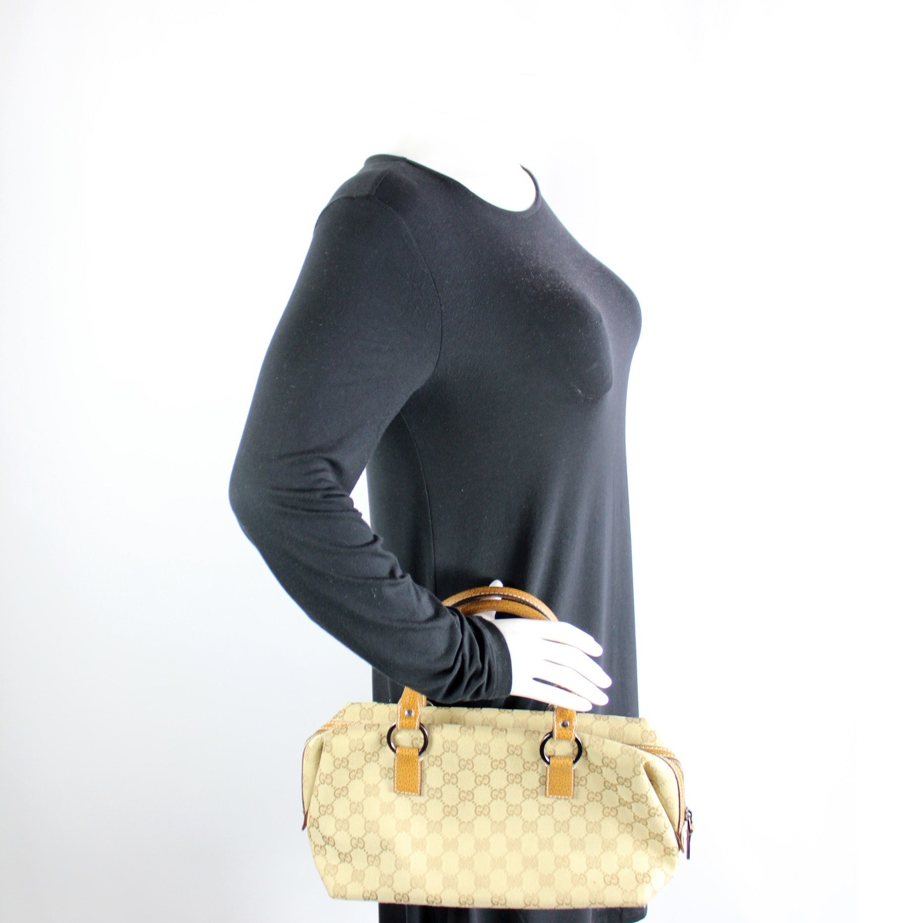 This Gucci Boston Bagis eye catching bag. The exterior is in the classic Gucci GG canvas.