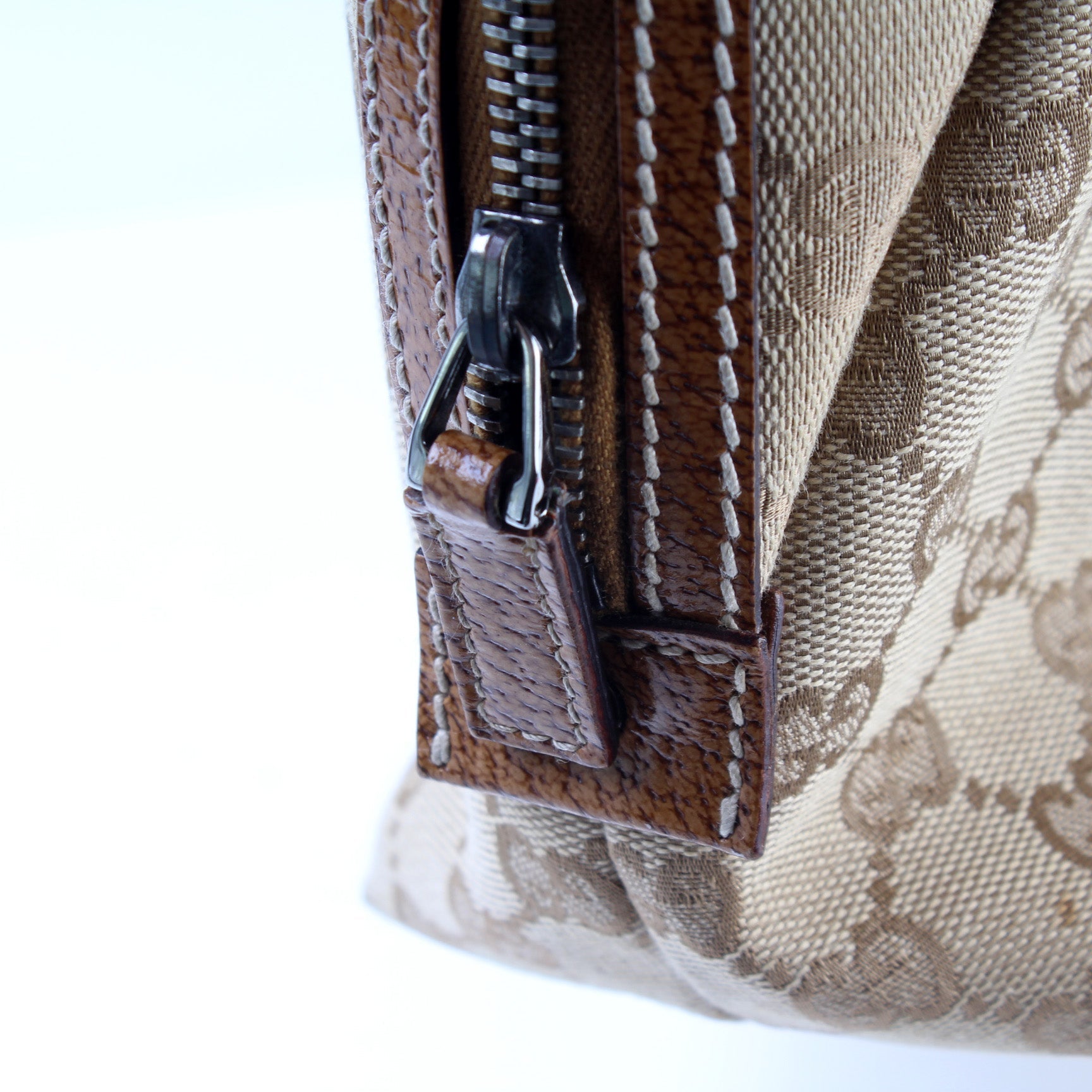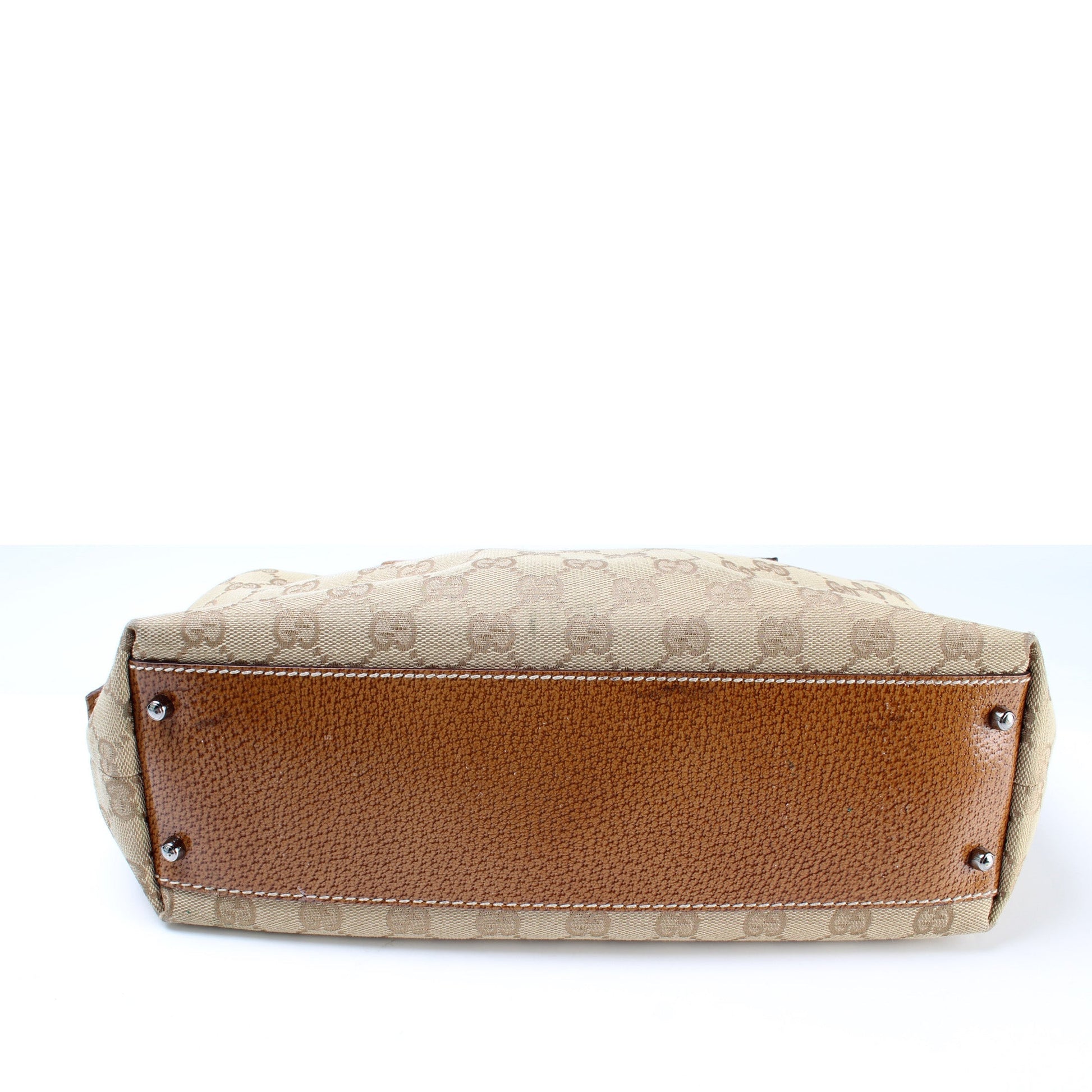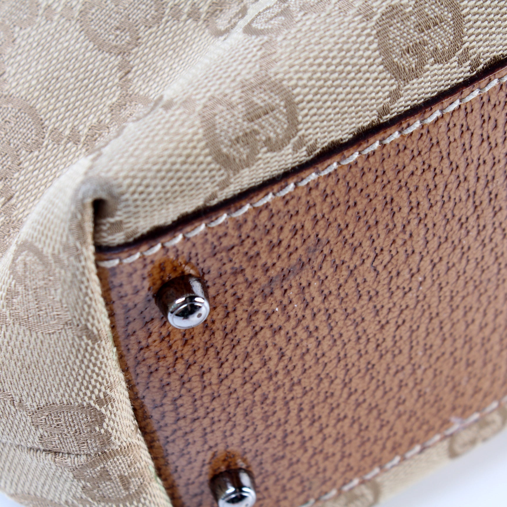 This Gucci Boston Bagis eye catching bag. The exterior is in the classic Gucci GG canvas.
