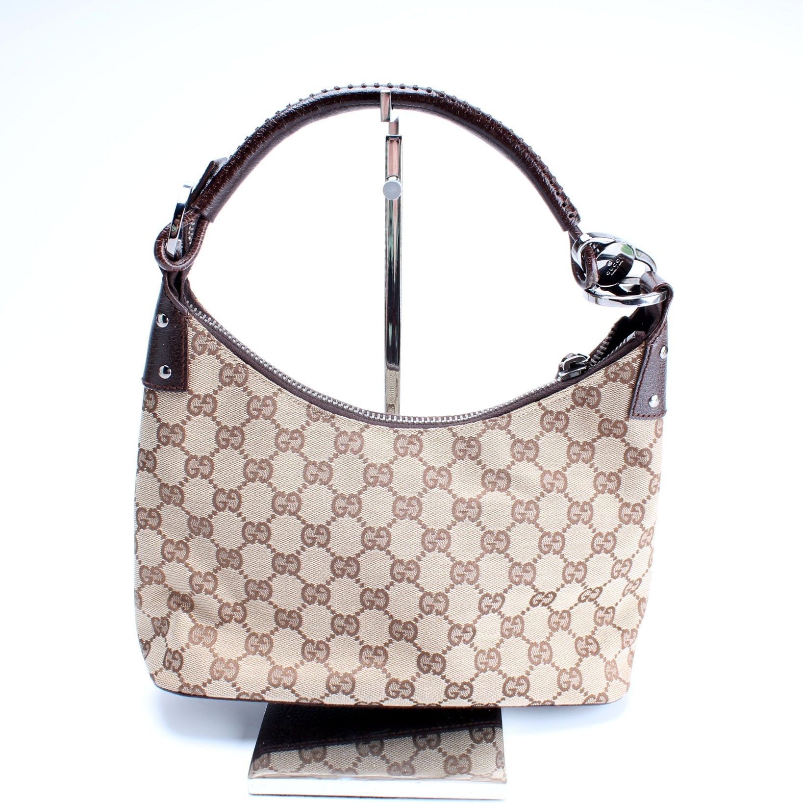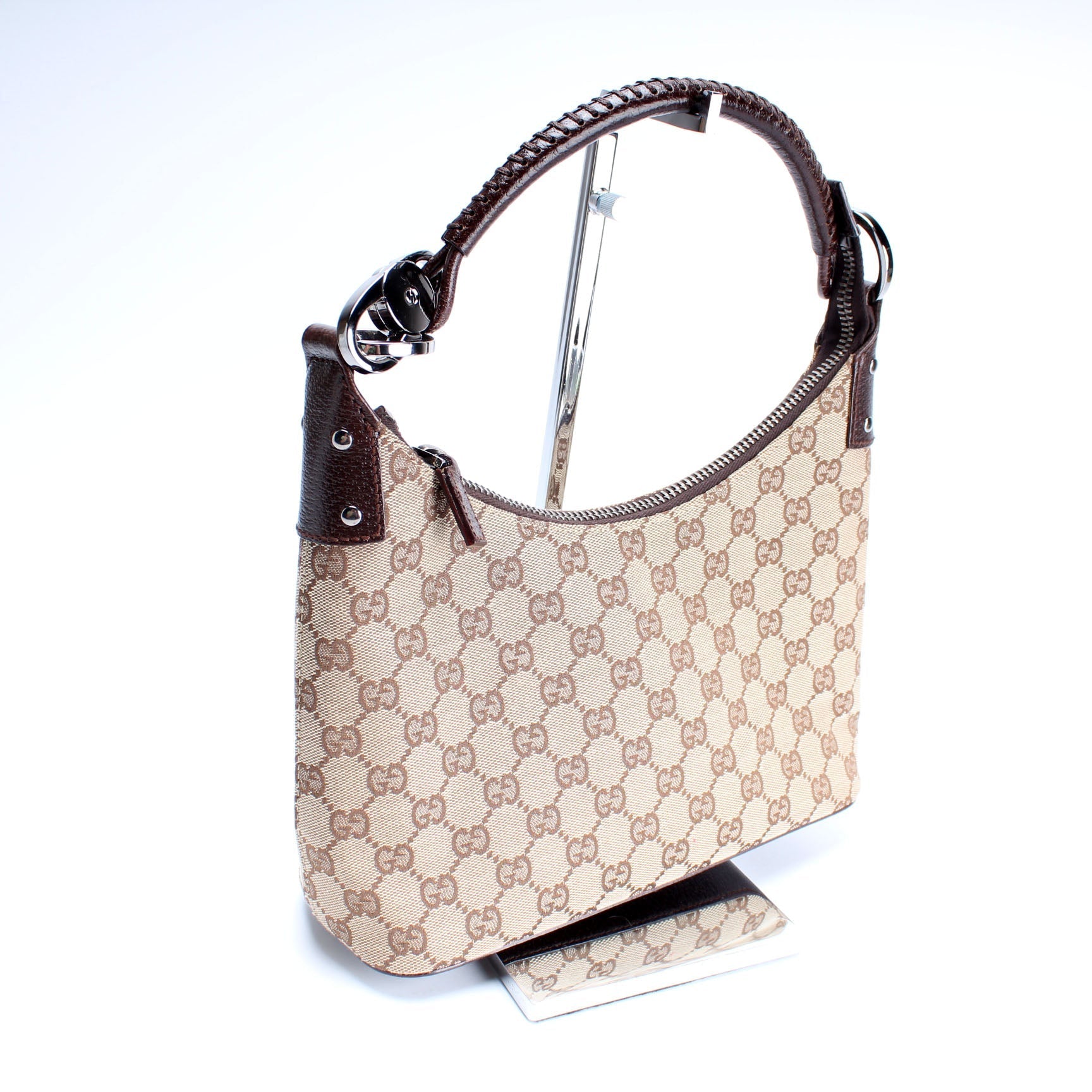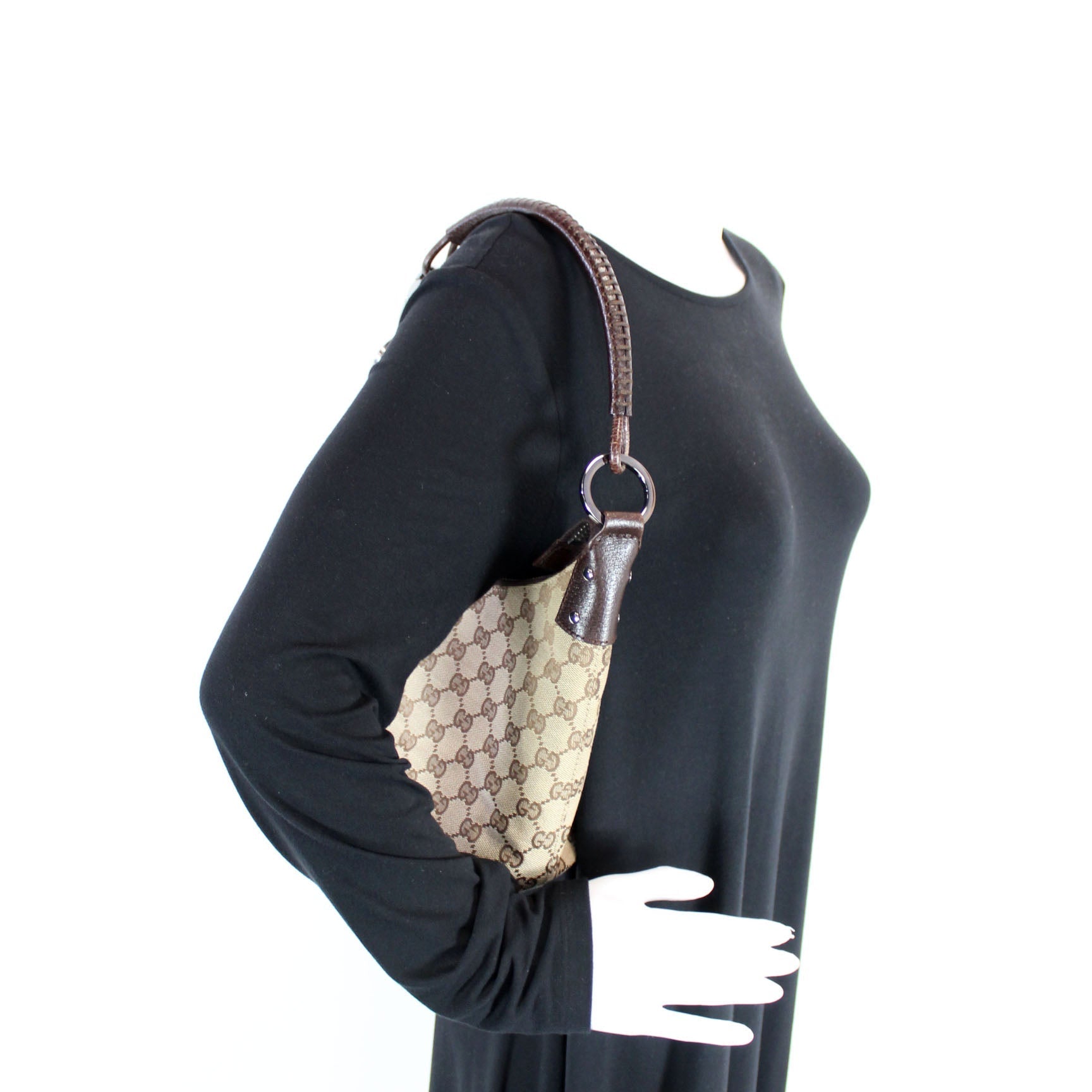 This Gucci GG Canvas Hobois eye catching bag. The exterior is in the classic GG canvas.