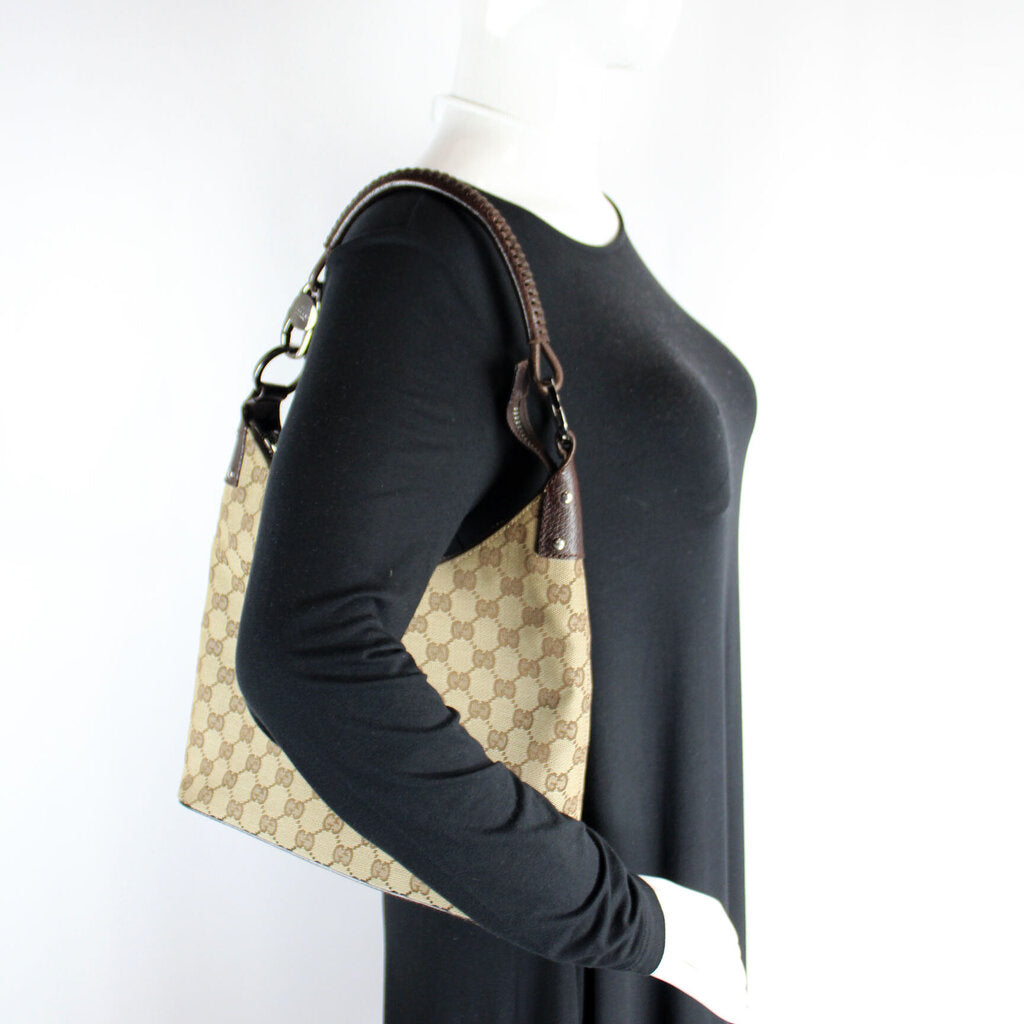 This Gucci GG Canvas Hobois eye catching bag. The exterior is in the classic GG canvas.