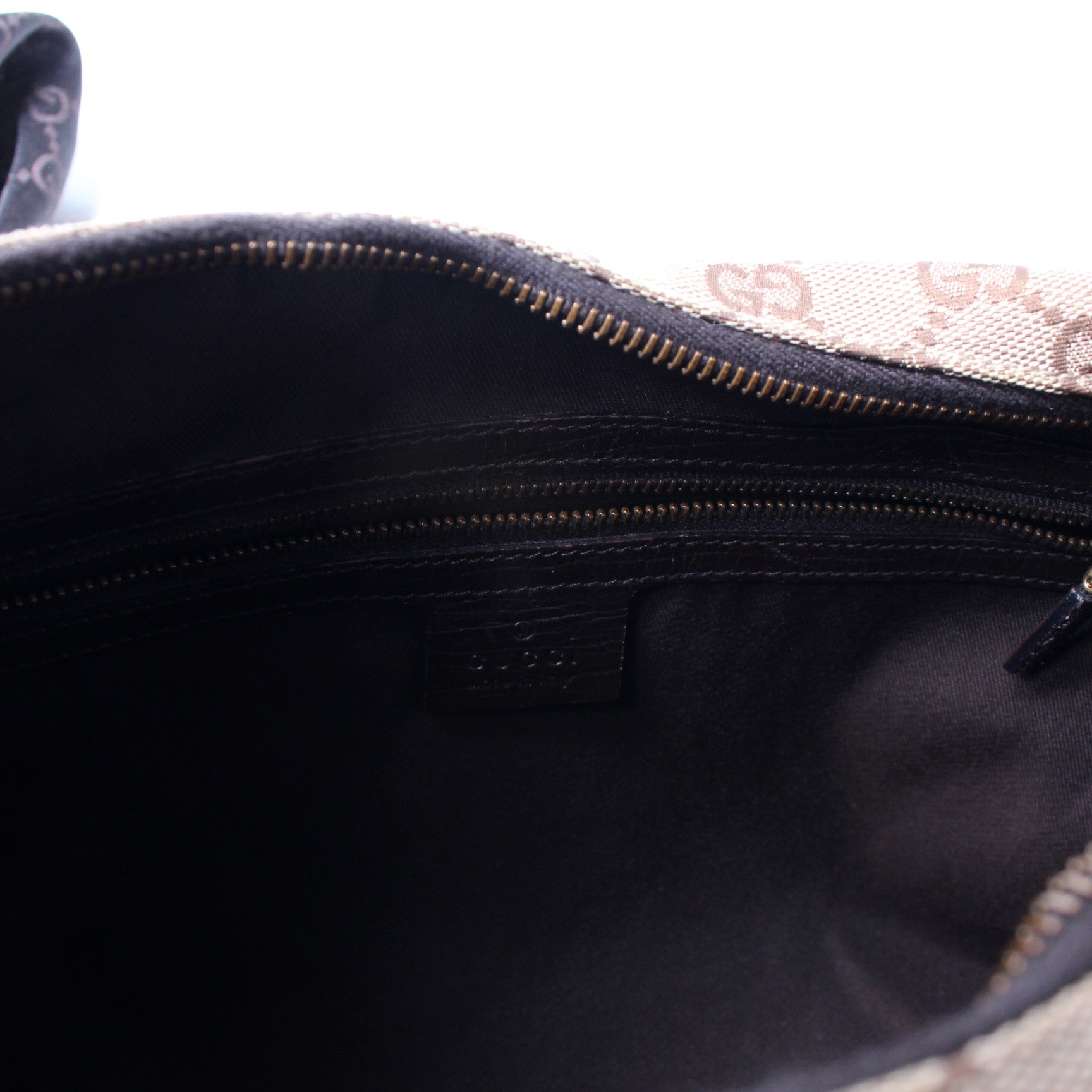 Interior: The interior is clean and free of rips or tears. The interior features one zip closure pocket.