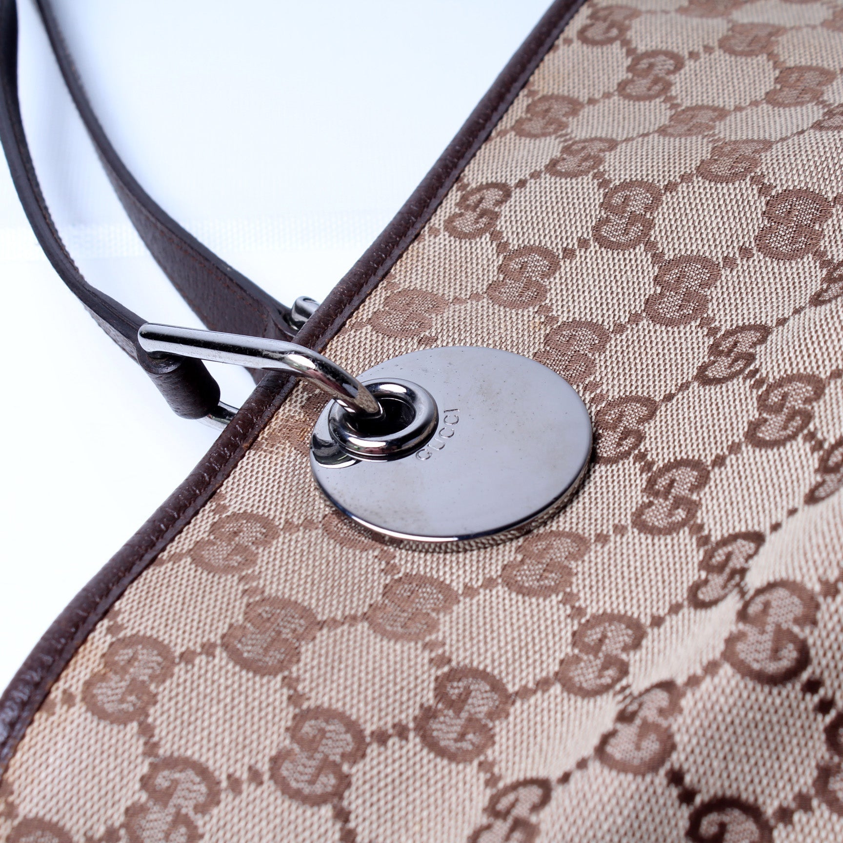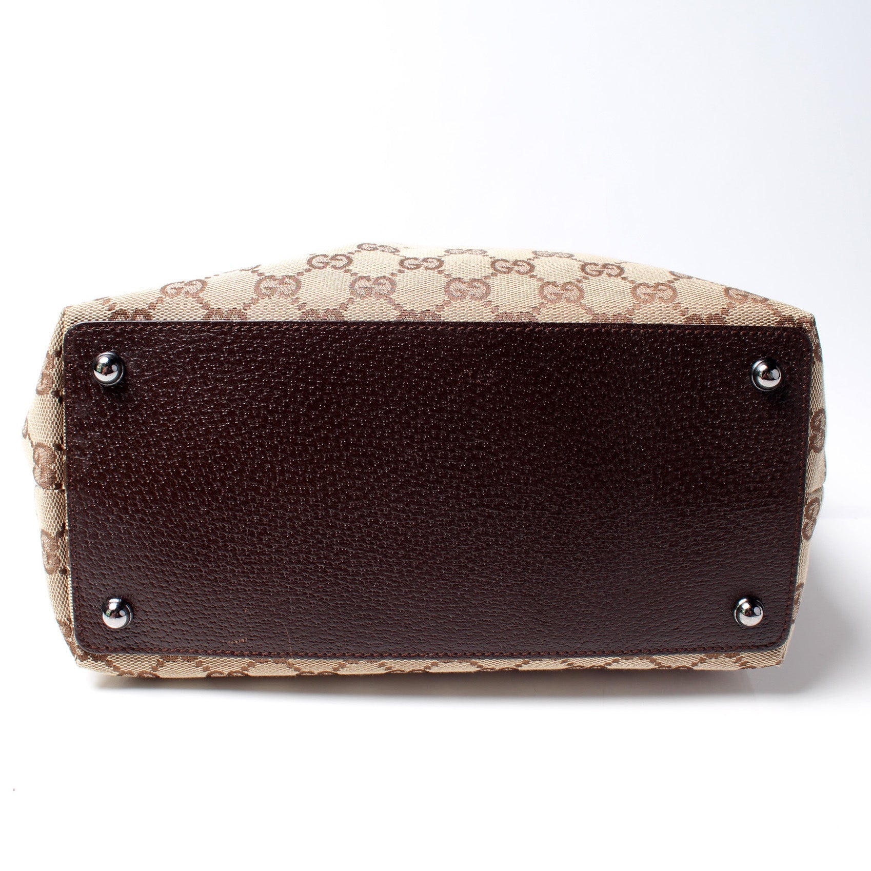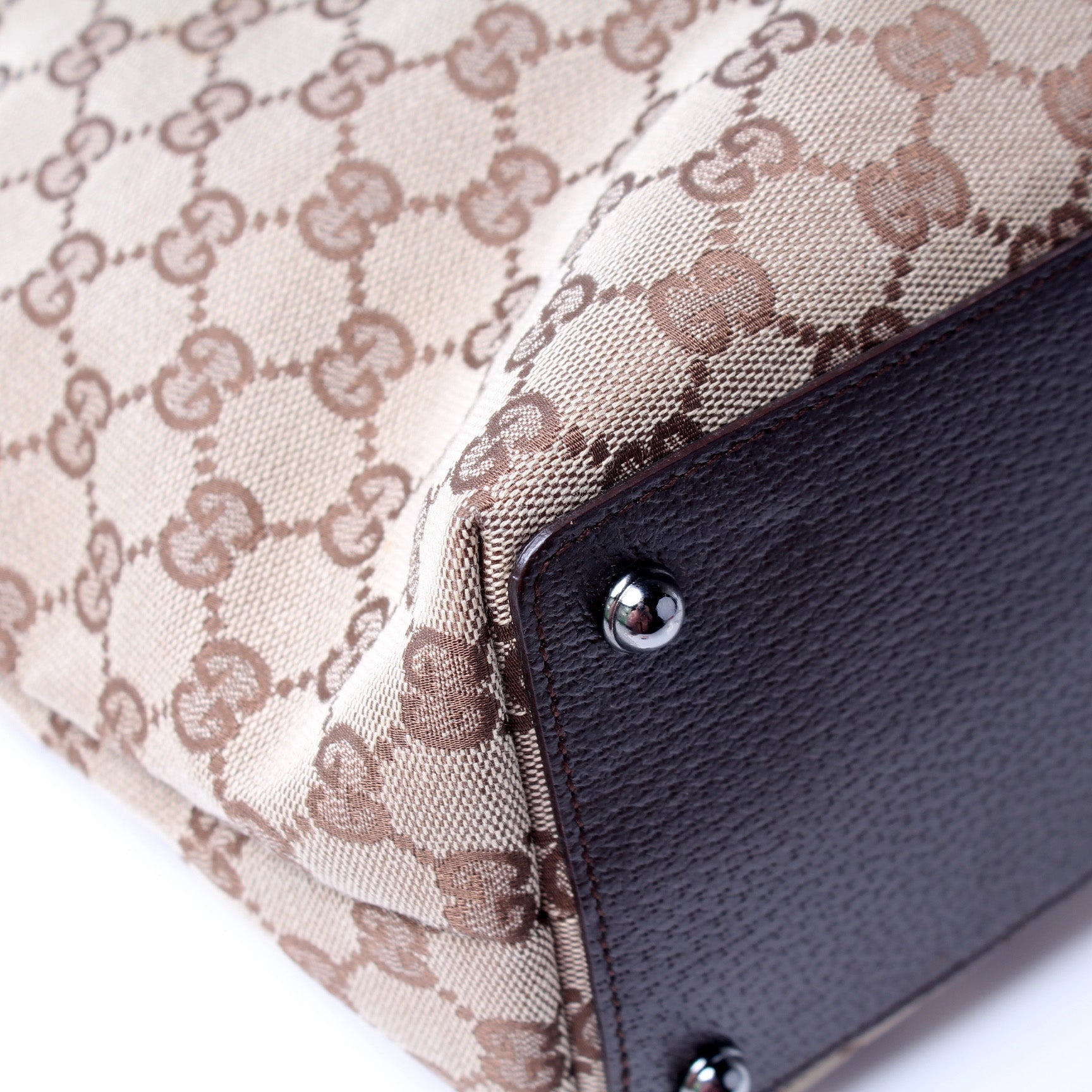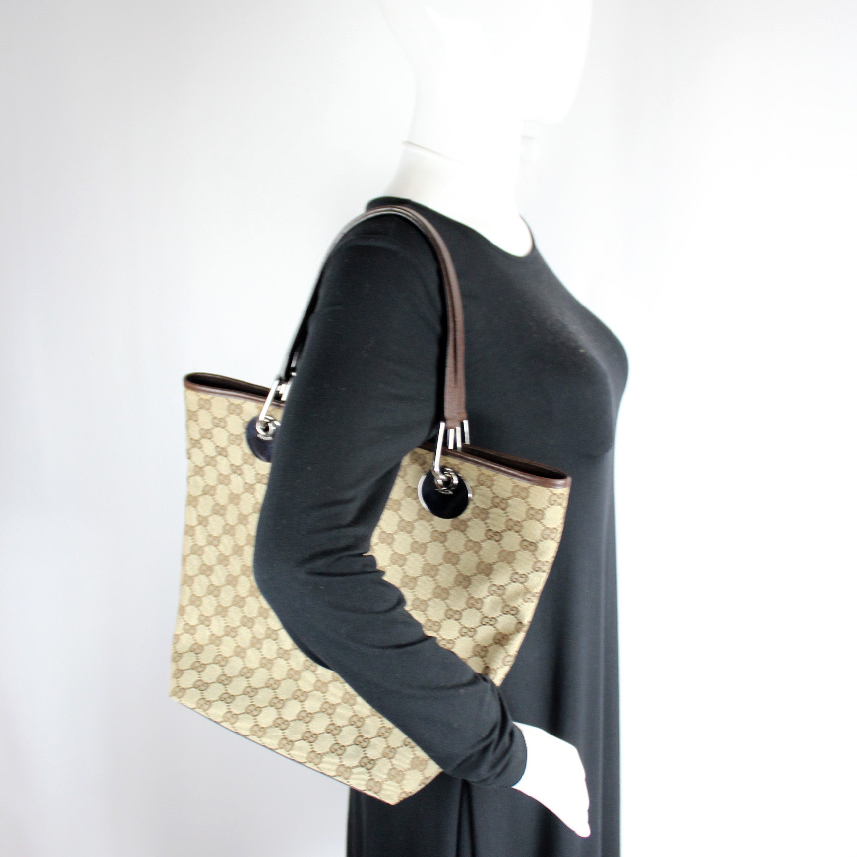 This Gucci GG Canvas Tote is guaranteed 100% authentic. The exterior is in the classic Gucci GG canvas.