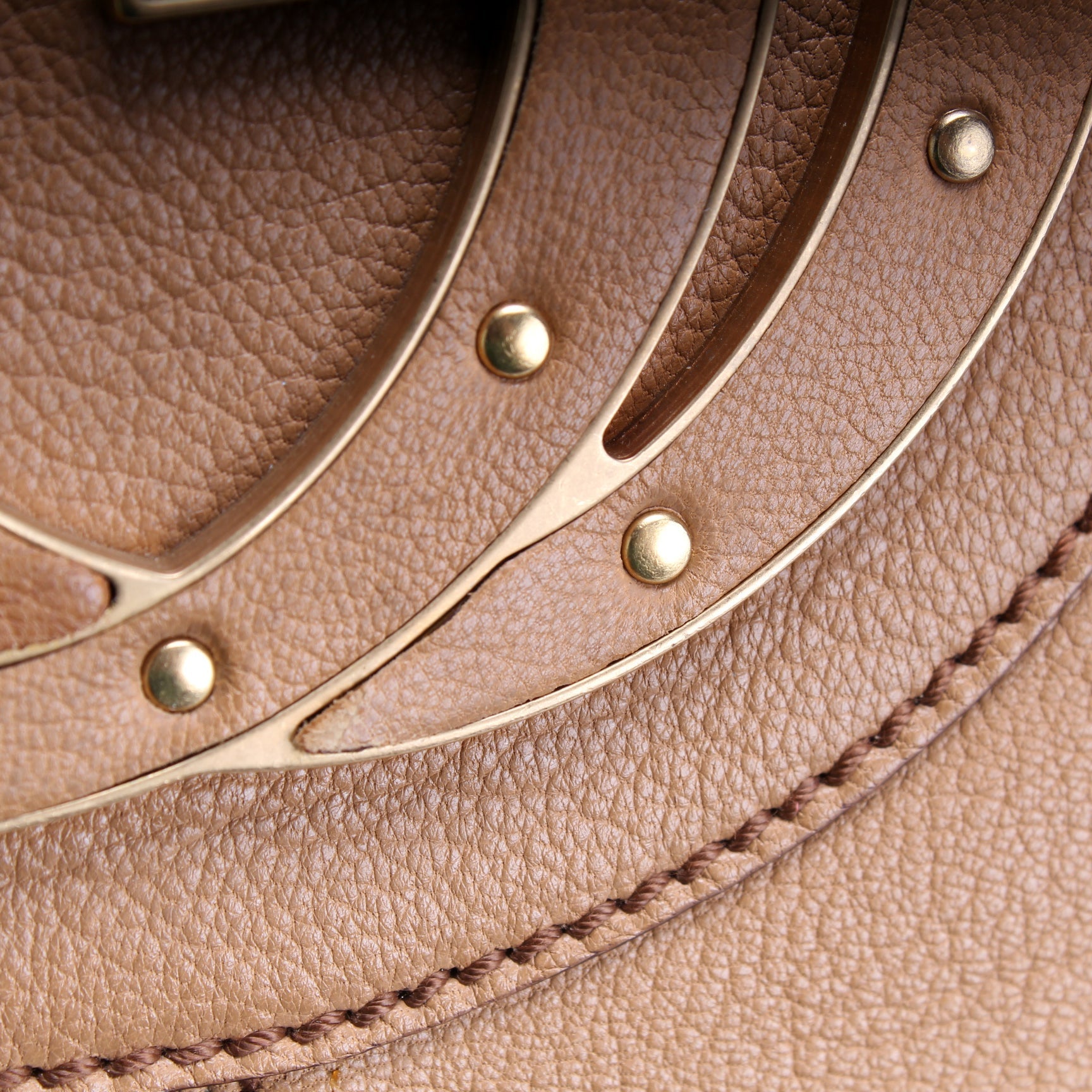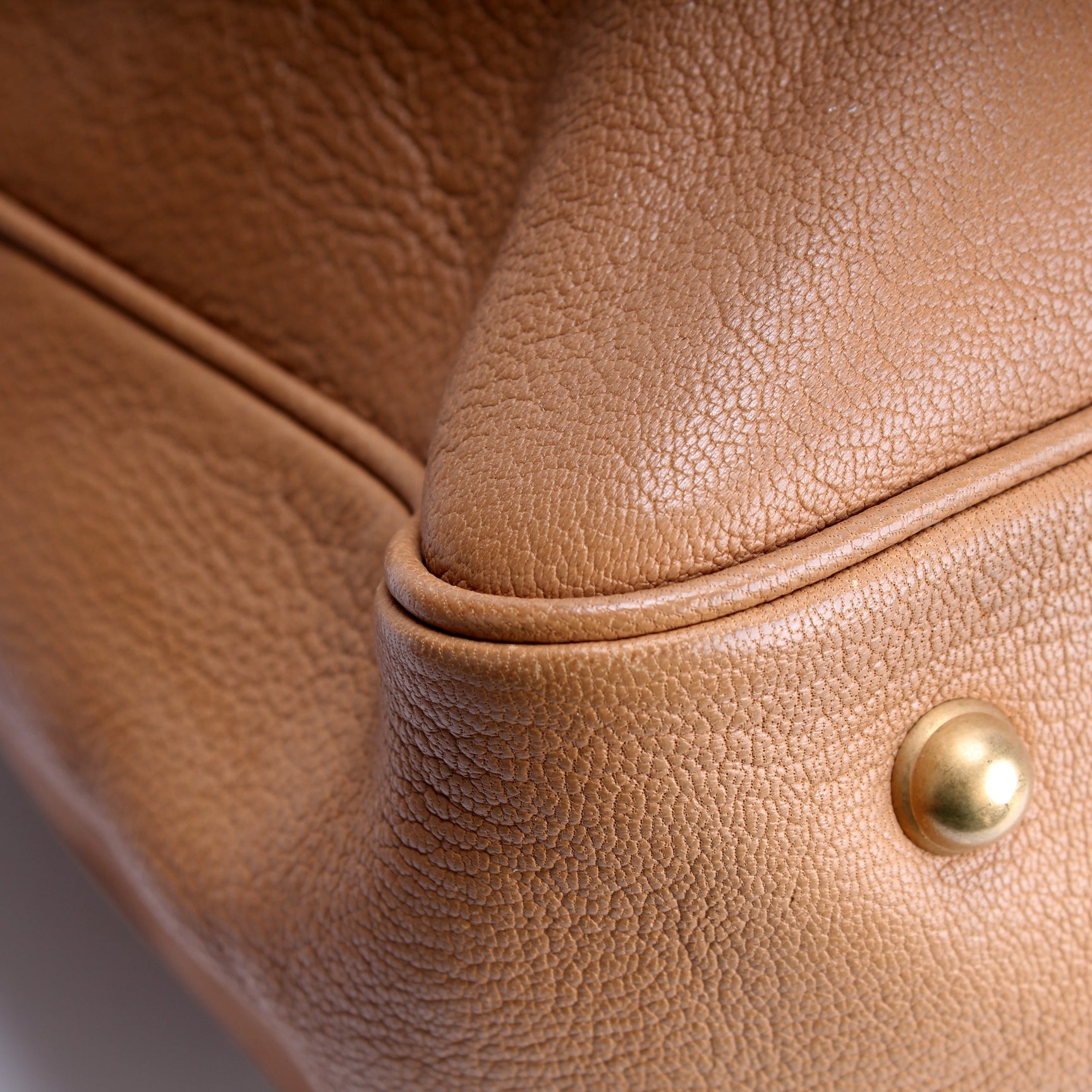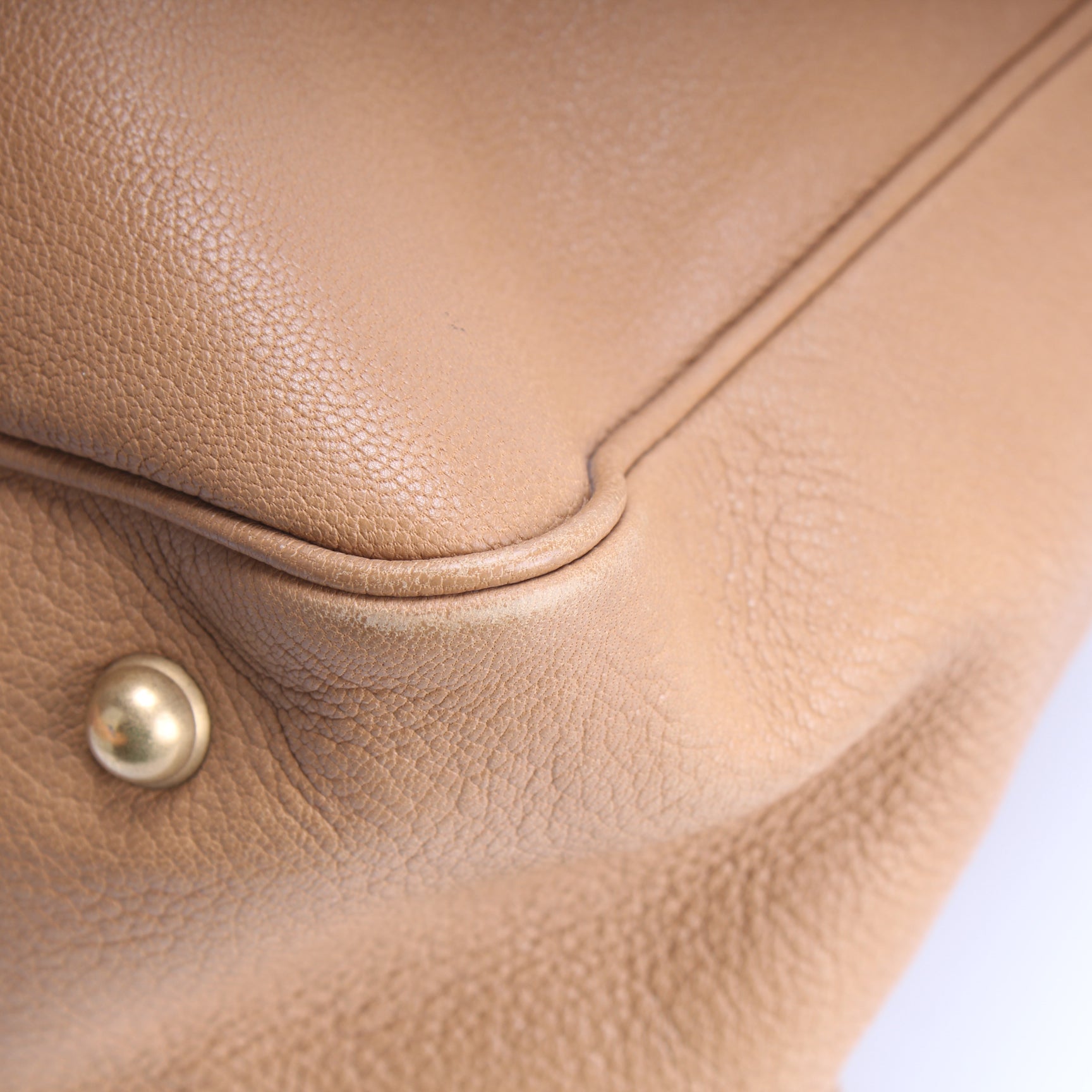 Exterior: The exterior leather is free of any rips or cracks. There is a minor scratch to the leather GG.
