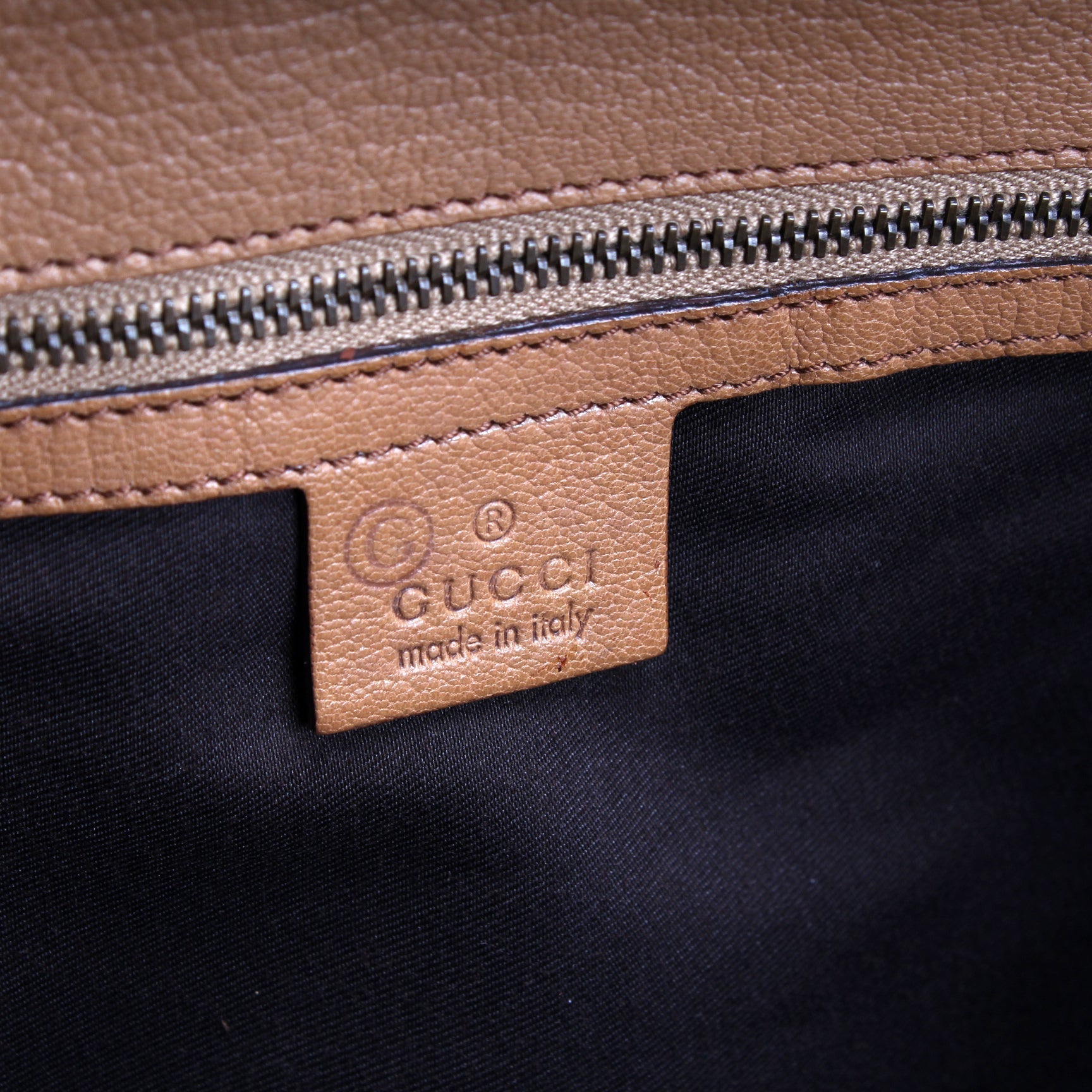 Interior: The interior is clean and free of rips or tears. The interior features one zip closure pocket.