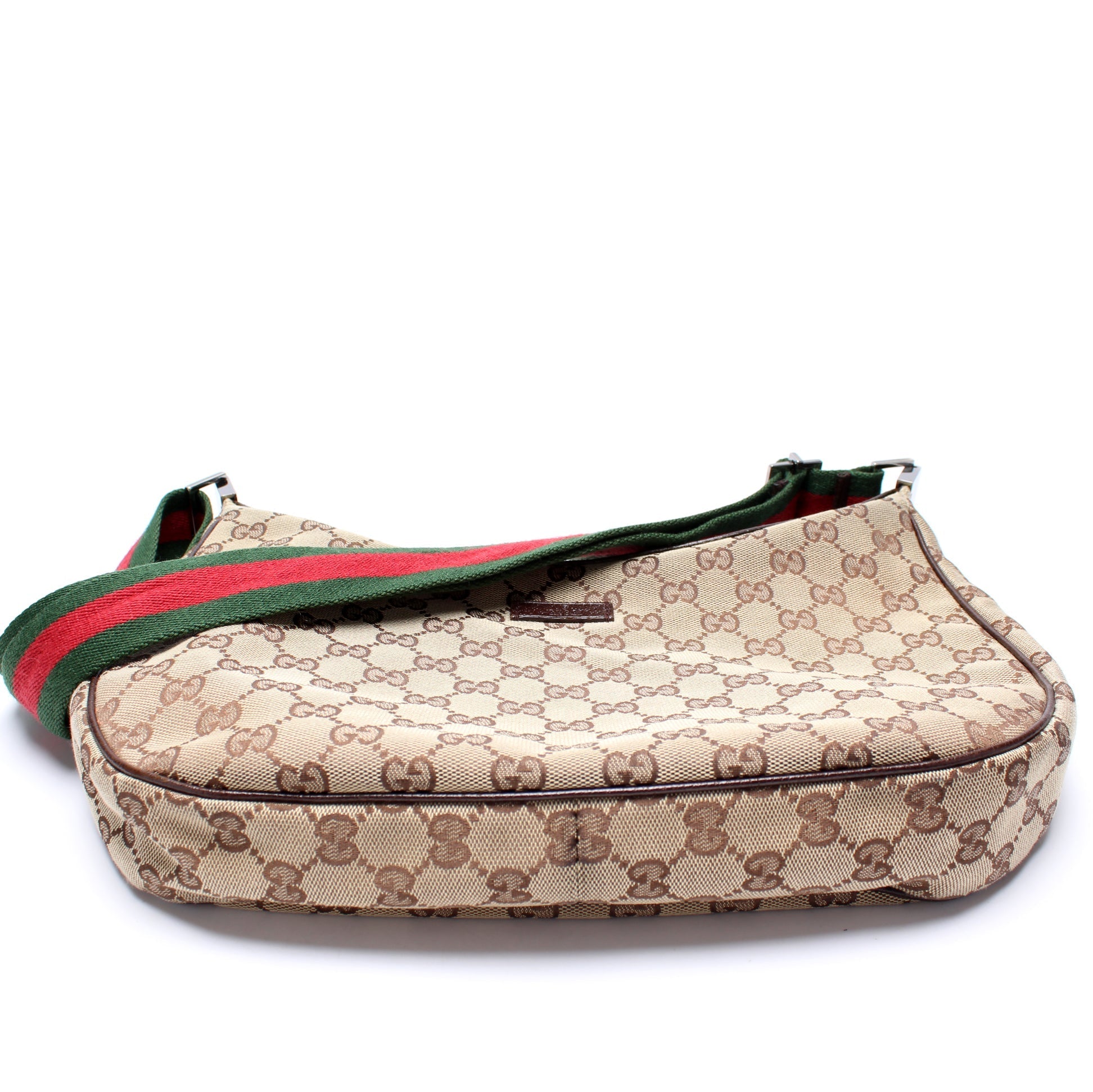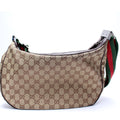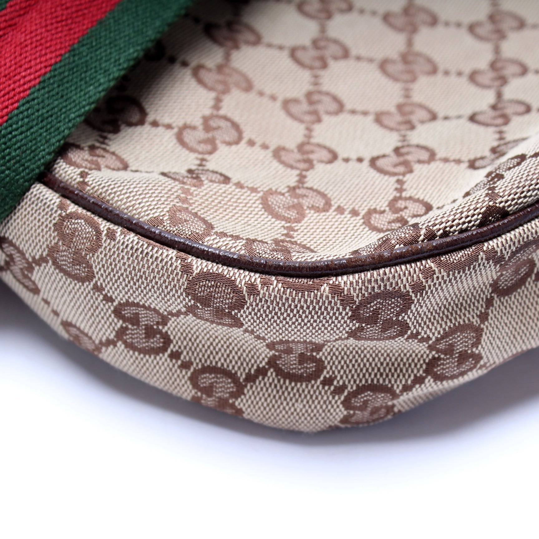 This Gucci Shelly Web Crossbody is guaranteed 100% authentic. The exterior is in the classic Gucci GG canvas.