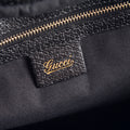 This Gucci GG Canvas Metal Bamboois eye catching bag. The exterior is in the classic Gucci GG canvas.